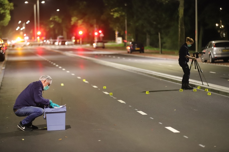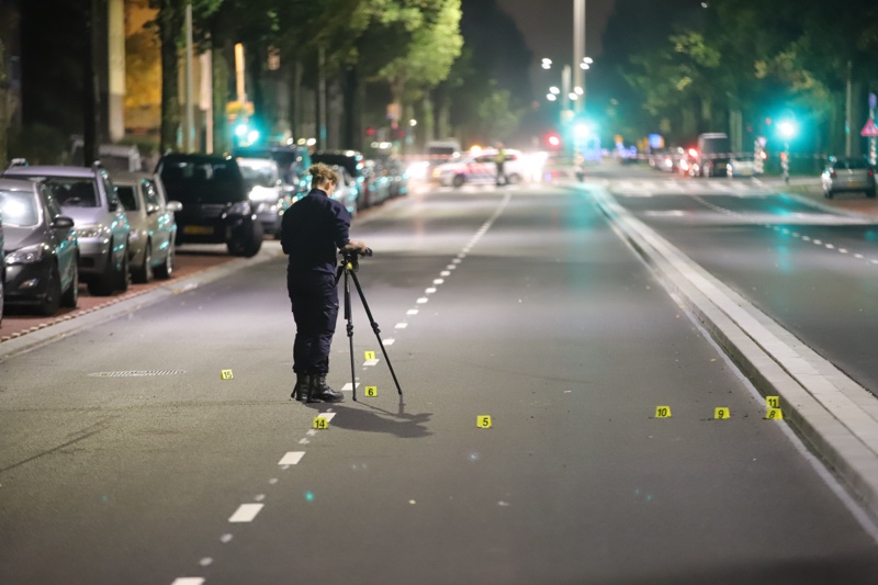 Ter plaatse gekomen agenten troffen inderdaad meerdere hulzen aan op het wegdek, de politie sloot de Erasmusweg direct af tussen de Loevensteinlaan en de Betje Wolffstraat.