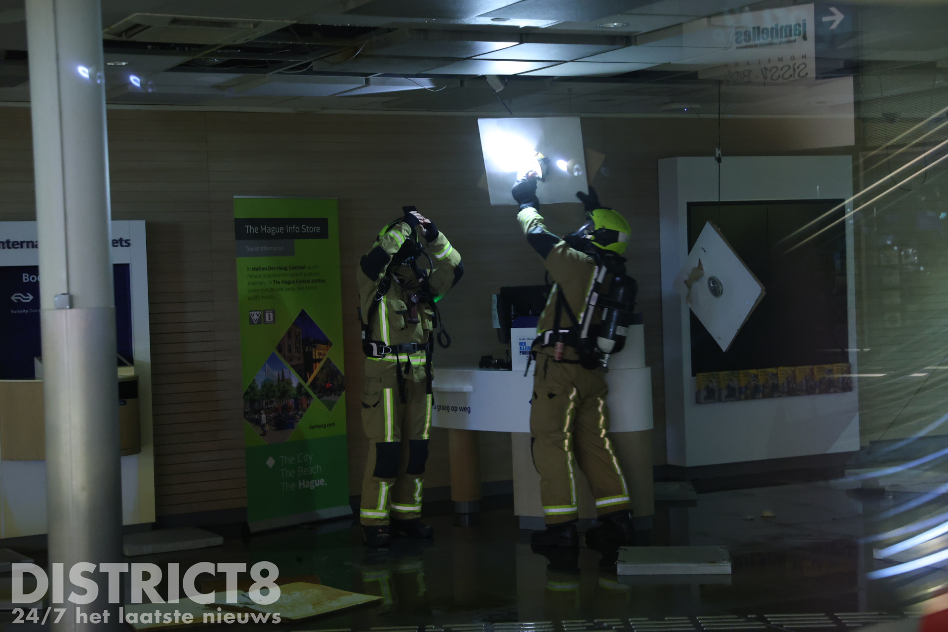 Den Haag – Een gesprongen koelleiding heeft aanzienlijke schade veroorzaakt aan de OV Service & Tickets winkel in het centraal station van Den Haag. Hierdoor stroomde er veel water vanuit het plafond naar beneden.