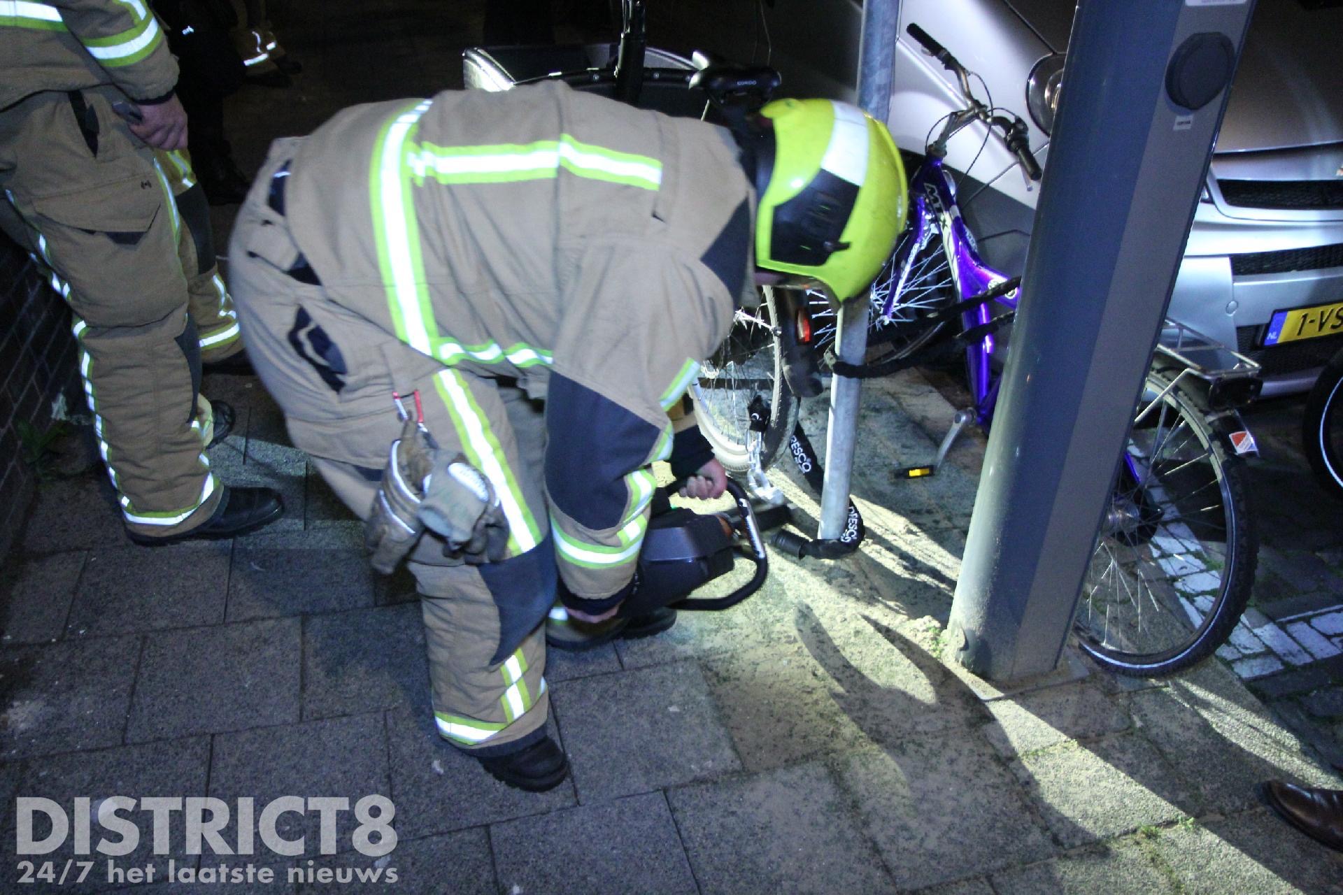 Den Haag – In de nacht van vrijdag (12 mei) op zaterdag (13 mei) zijn de brandweerlieden van kazerne Laak uitgerukt naar de Elise van Calcarstraat voor het los knippen van een slot die vastzat aan een gestolen bakfiets.