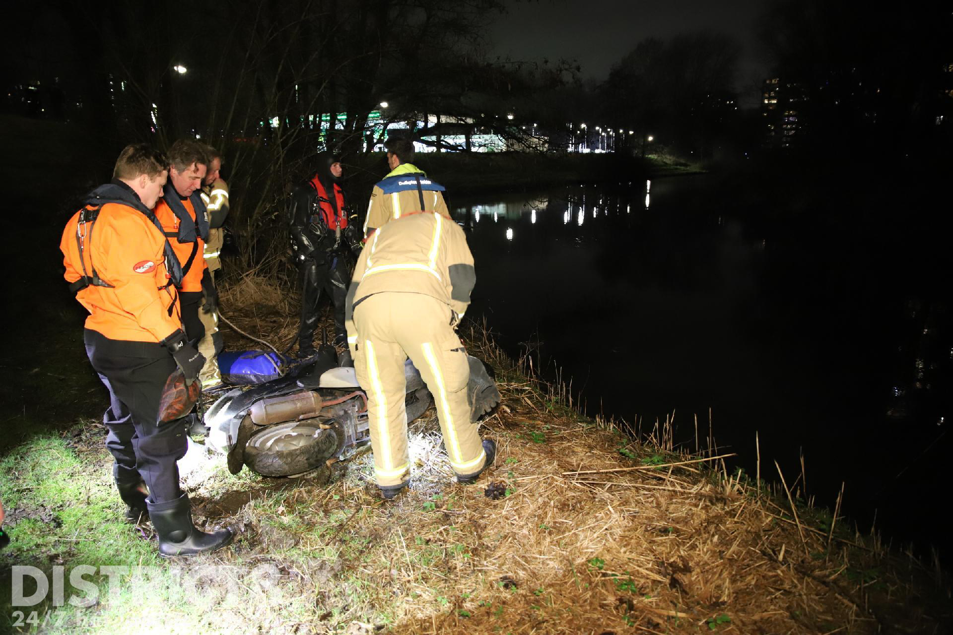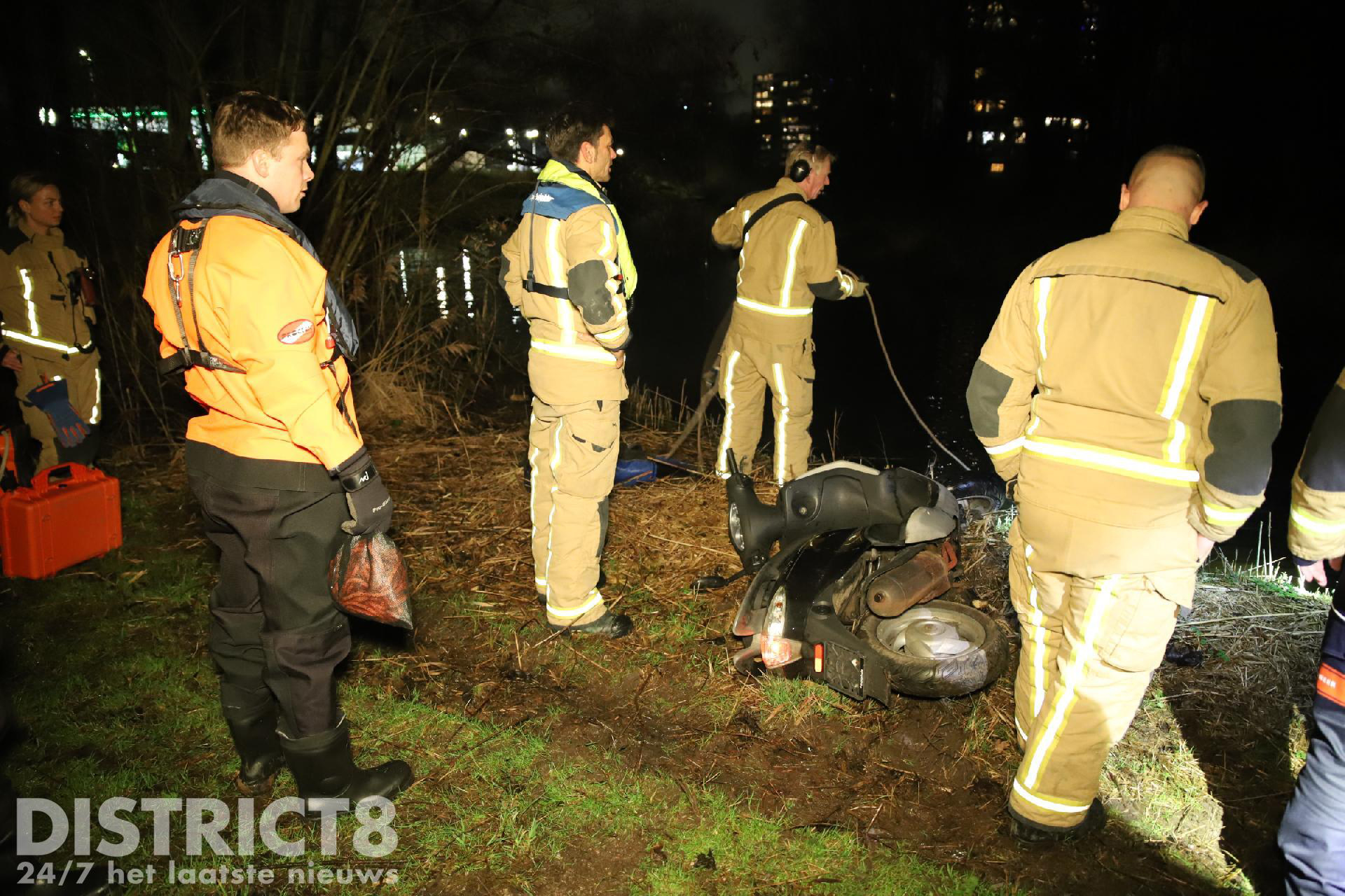 De politie kreeg een melding dat er een scooter was gedumpt. Op de scooter zat geen kentekenplaat. Toen de politie bij de scooter aankwam bleek de motor nog warm te zijn. Hierop besloten de agenten om de brandweer in te lichten. Er was een kans dat iemand in het water terecht was gekomen.