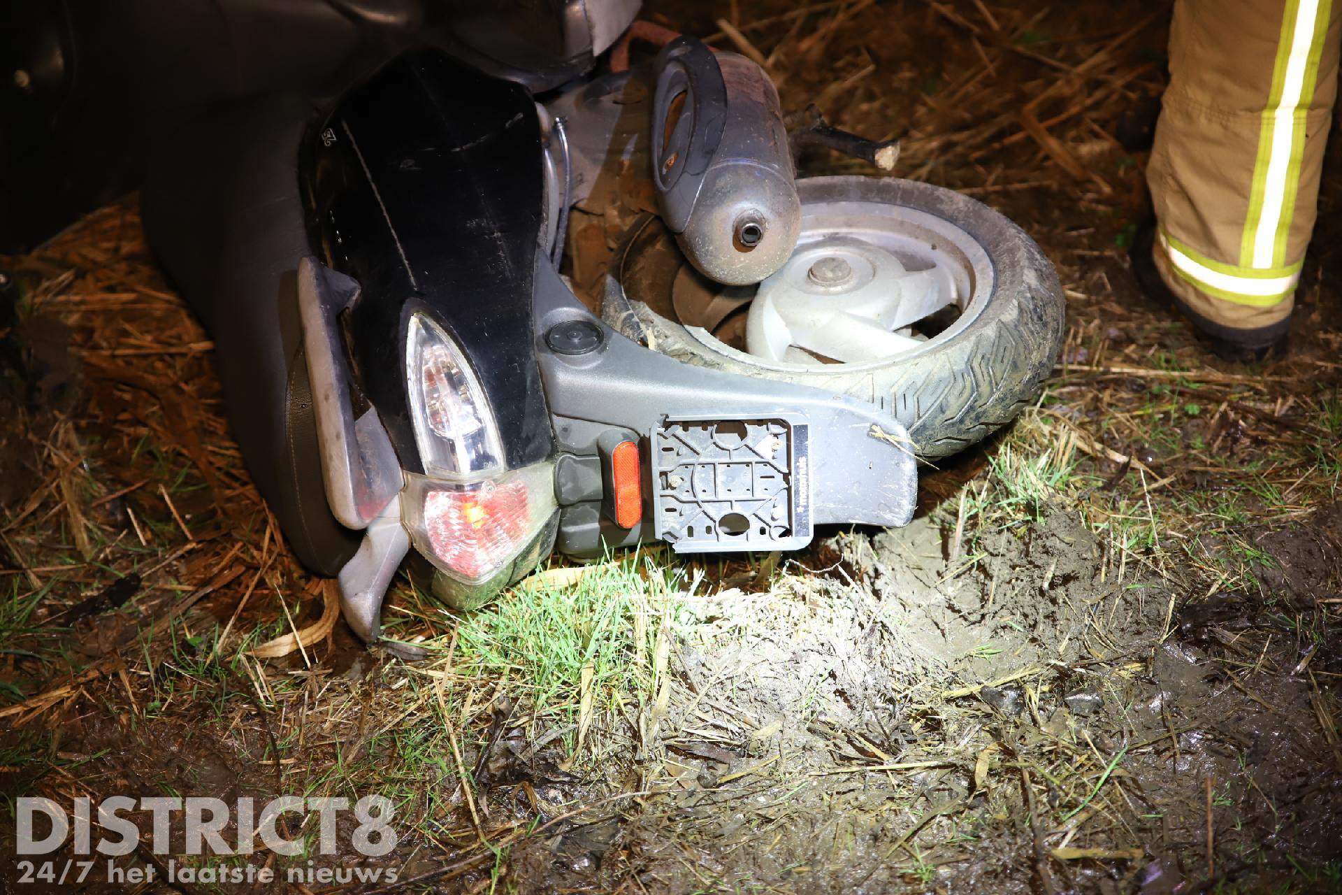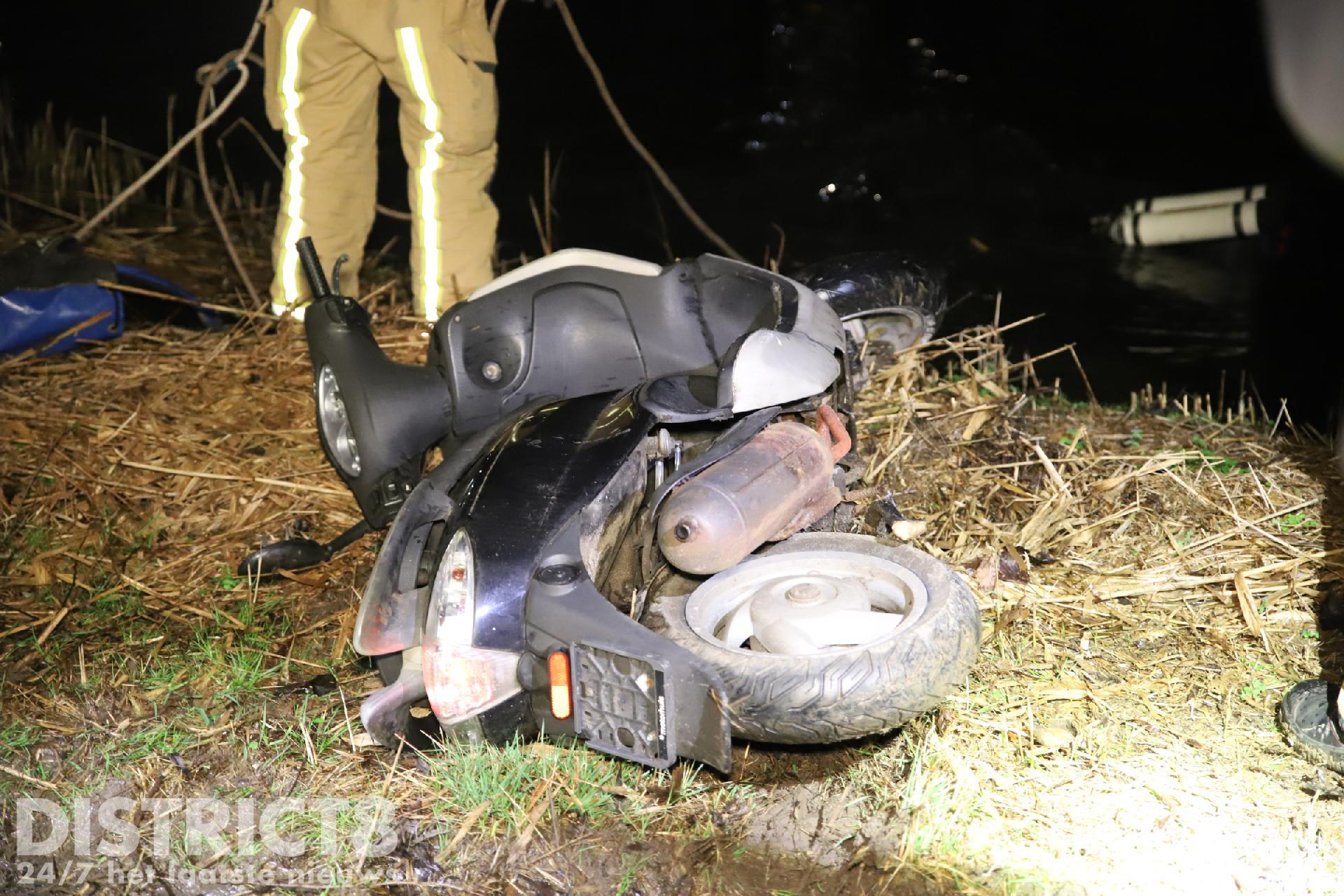 Een duiker van de brandweer doorzocht de sloot op zoek naar een of meerdere opzittende(n) van de scooter. Er werd niemand aangetroffen. De brandweer kon hierna weer retour.