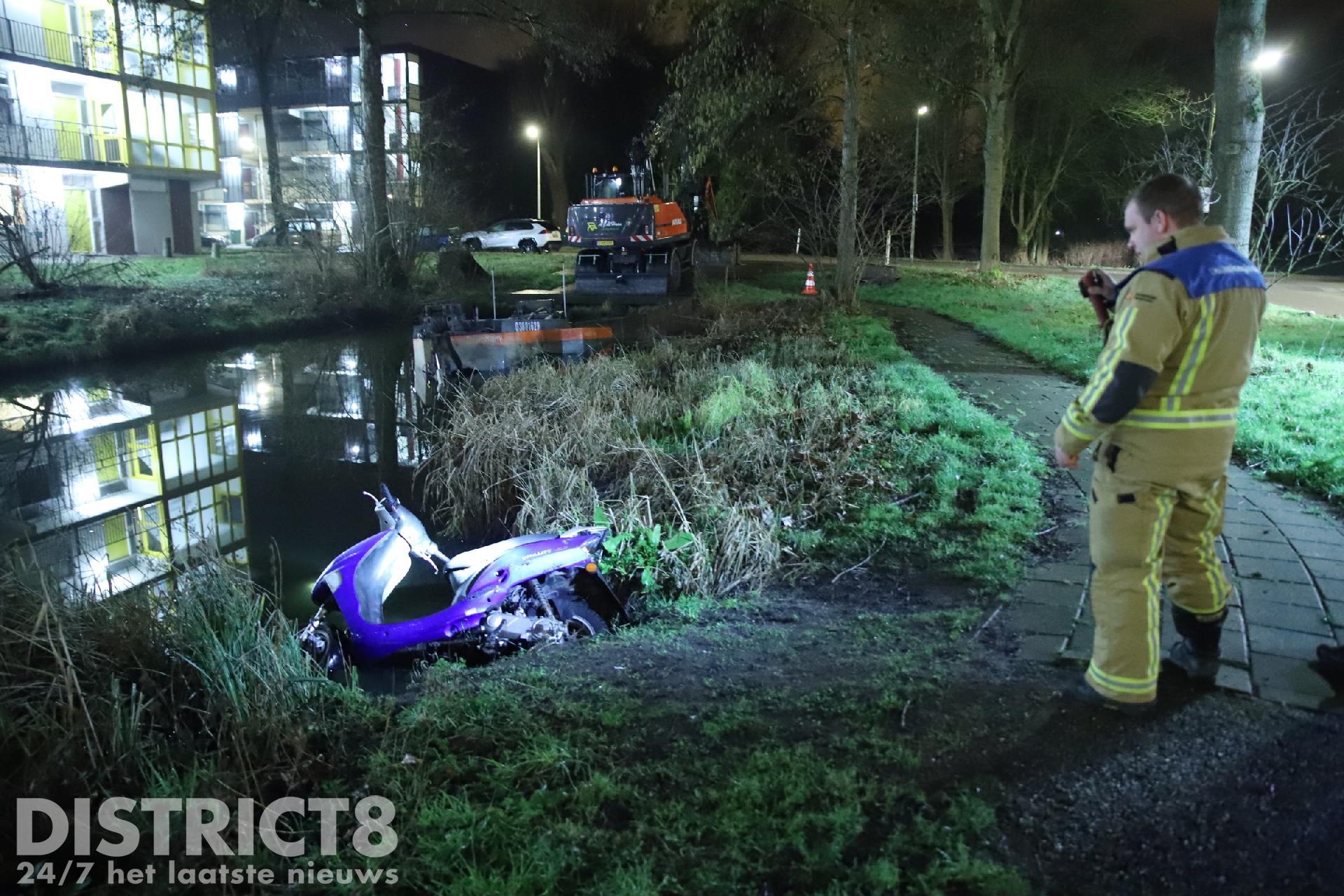 Omdat de scooter geen kentekenplaat had, en er geen sleutels in het contact zaten werd er al snel vanuit gegaan dat er niemand te water was geraakt en de scooter mogelijk gepoogd is te dumpen in de sloot. Om te voorkomen dat er nieuwe meldingen binnen zouden komen over de scooter heeft de brandweer de scooter uit het water getrokken en heeft de politie een lintje om de scooter gedaan zodat mensen zien dat het bekend is.