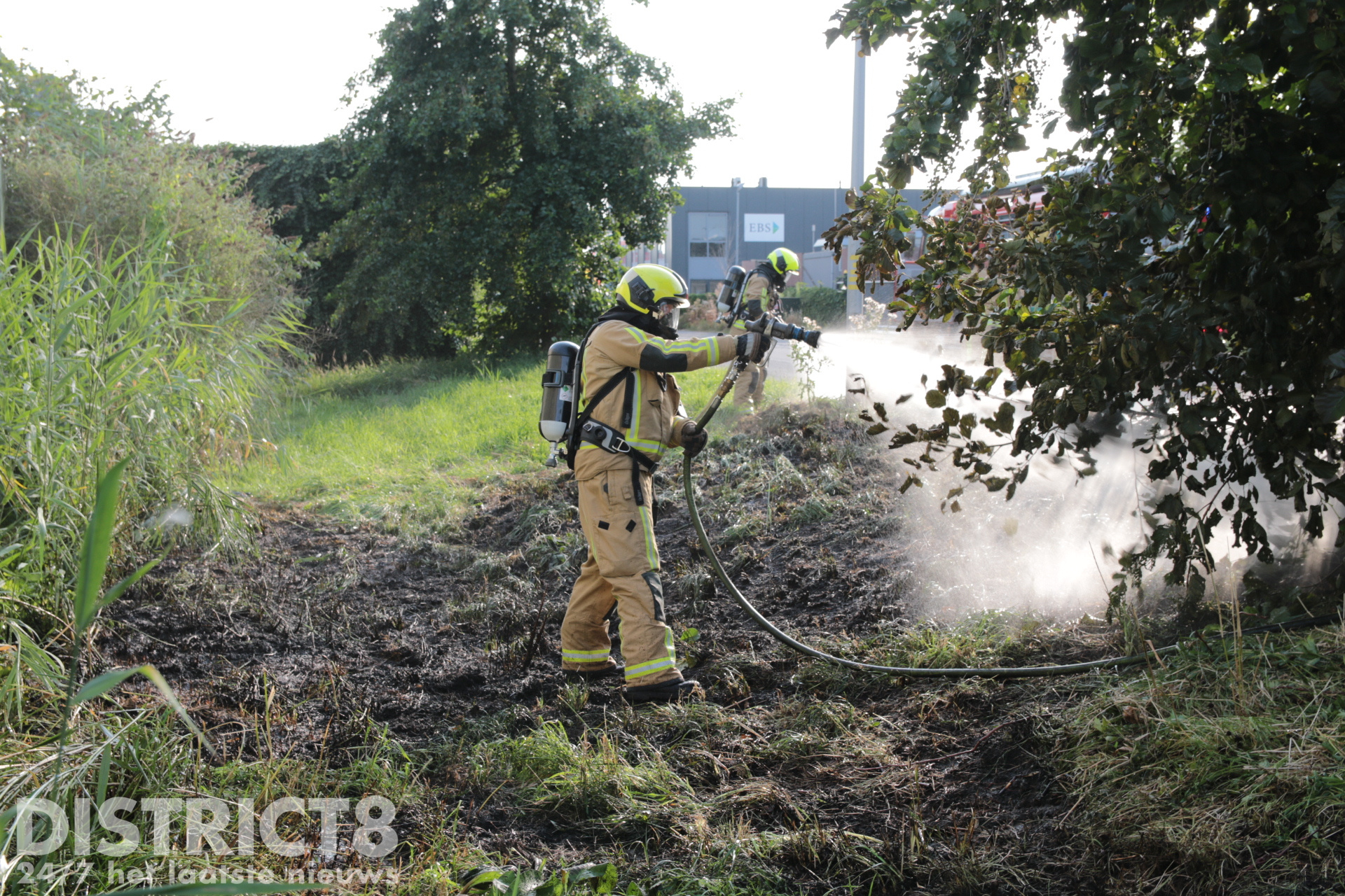 Den Hoorn – Dinsdagavond 6 augustus rond 19:00 uur is aan het Vrij-Harnasch in Den Hoorn een flinke bermbrand ontstaan.