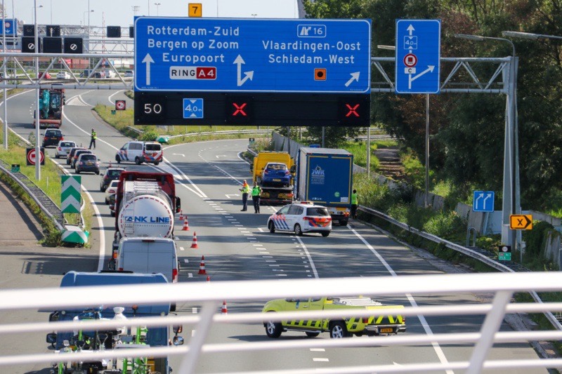 Schiedam – Donderdagmiddag heeft er op de A4 (Kethelplein > Beneluxtunnel) een aanrijding plaatsgevonden tussen een personenauto en een vrachtwagen.