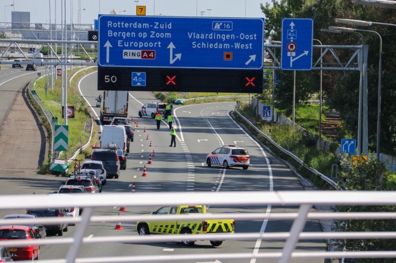 Hierdoor werd de afrit richting Vijfsluizen (Vlaardingen & Schiedam) afgesloten voor al het verkeer. Voor vele bestuurders erg lastig omdat omrijden alleen via de Waalhaven of Hoogvliet kon. Diverse bestuurders negeerden de rode kruizen en namen op het laatste moment alsnog de afslag. Liever een boete dan te laat thuis kennelijk.