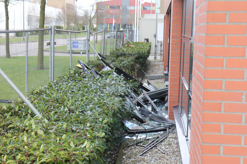 Vanaf de bovenste verdieping waaide een aantal ramen kapot die beneden op de grond terecht kwamen. Omdat het pand helemaal in de hekken staat is er geen direct gevaar voor omstanders. De beheerder van het pand zal zorg moeten dragen voor de reparatie.