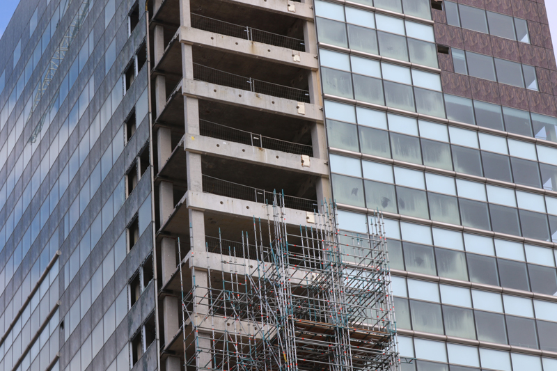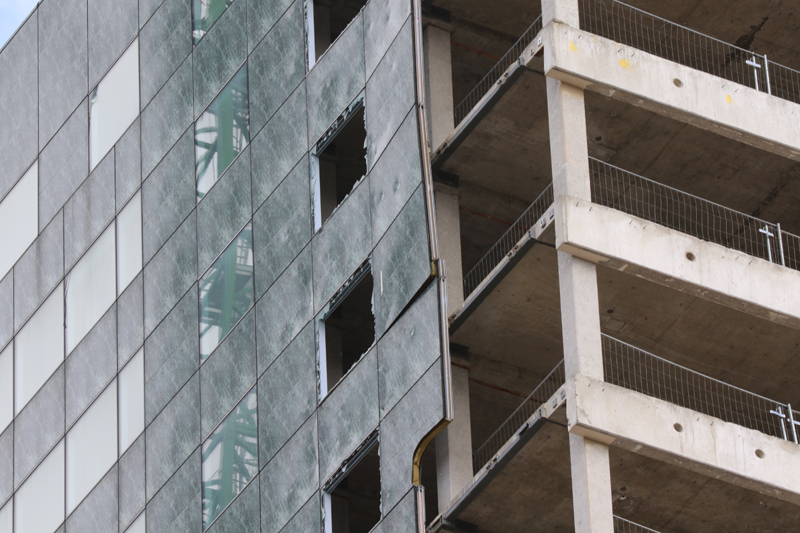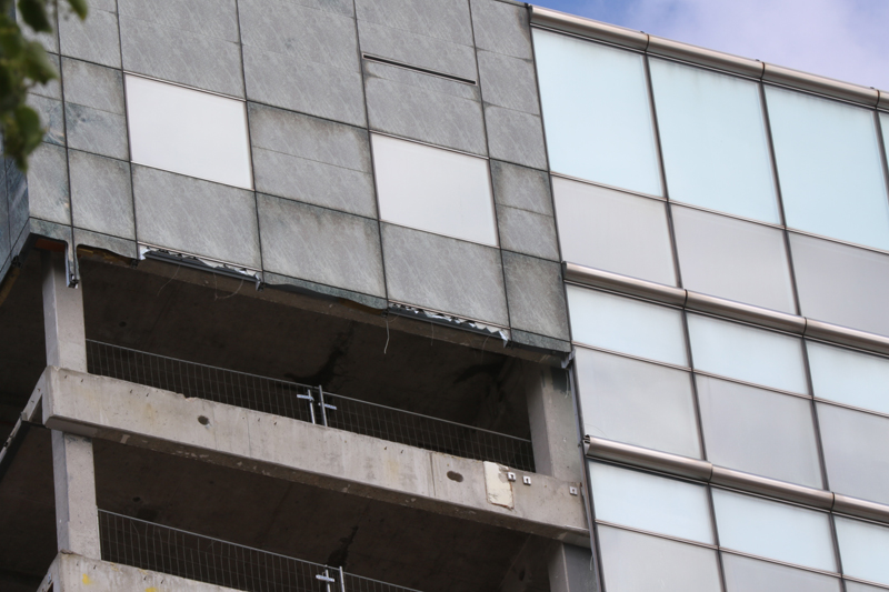 Ter plaatse bleken er meerdere gevelplaten los te zitten door de harde wind aan de Winston Churchill Tower. Het pand wordt momenteel gerenoveerd van kantoor naar een appartementencomplex.