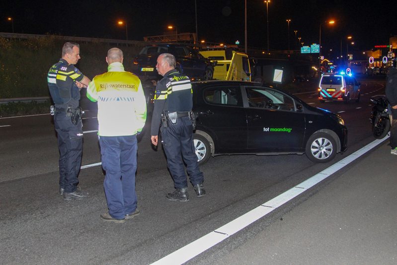 Rotterdam – Op de afrit van de A20 vanuit Schiedam richting de Tjalklaan zijn donderdagavond twee auto’s met elkaar in botsing gekomen. Hierbij raakte een van de bestuurders gewond, een ambulance kwam ter plaatse en bracht het slachtoffer over naar het ziekenhuis. De afrit was gedurende de afhandeling van het ongeval afgesloten voor het verkeer. Beide voertuigen zijn per berger afgevoerd.