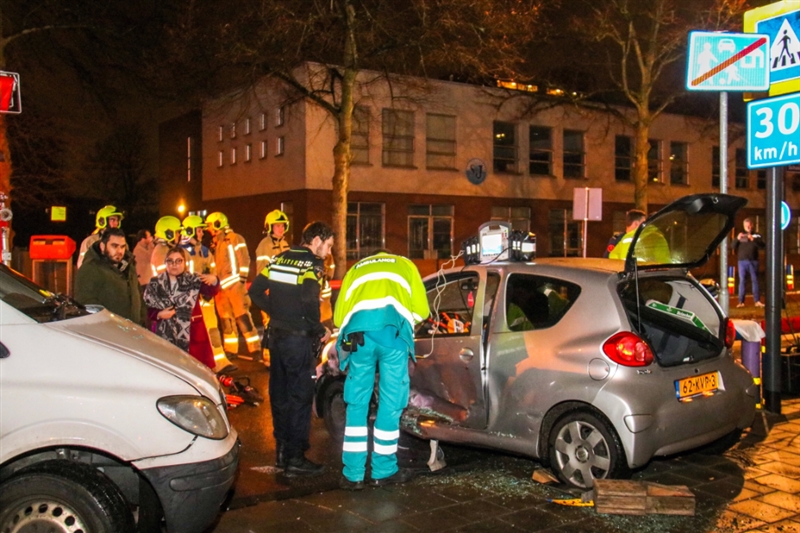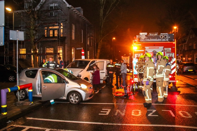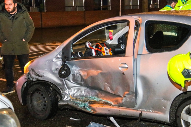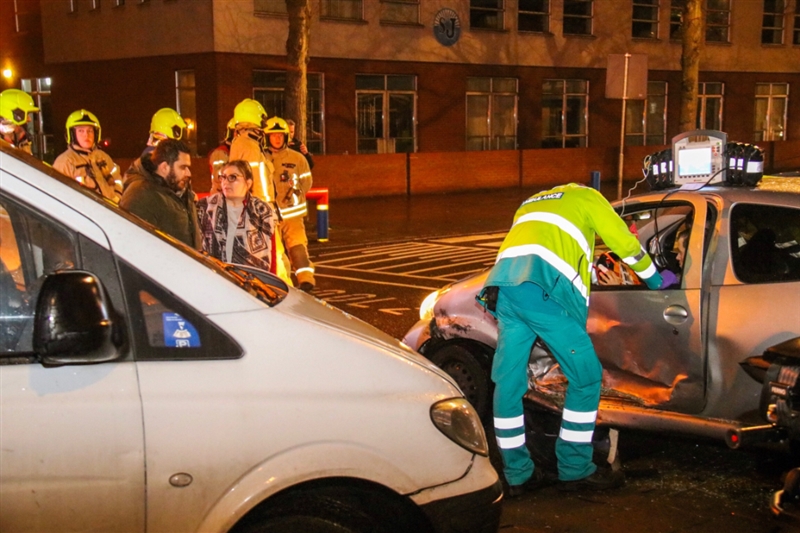 Schiedam – Op de kruising Willem de Zwijgerlaan – Nassaulaan zijn zaterdagavond een bestelbus en een auto met elkaar in botsing gekomen.