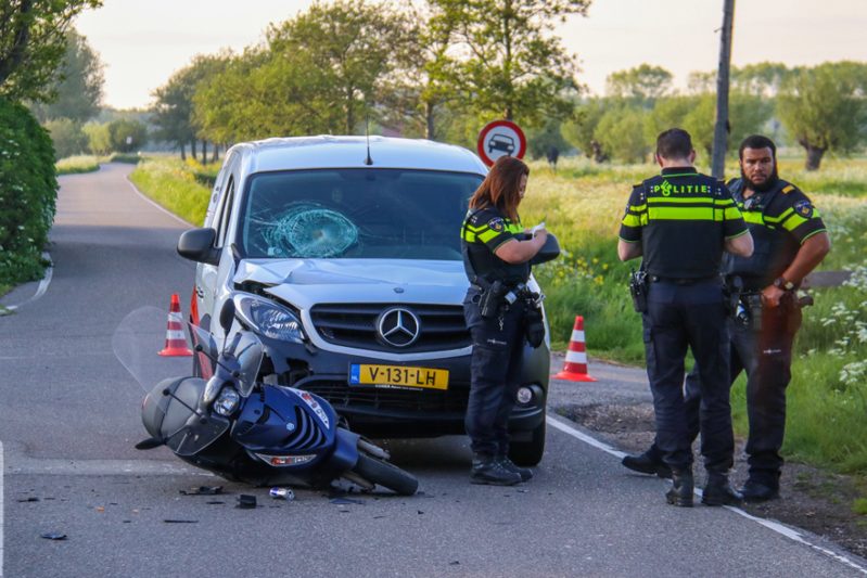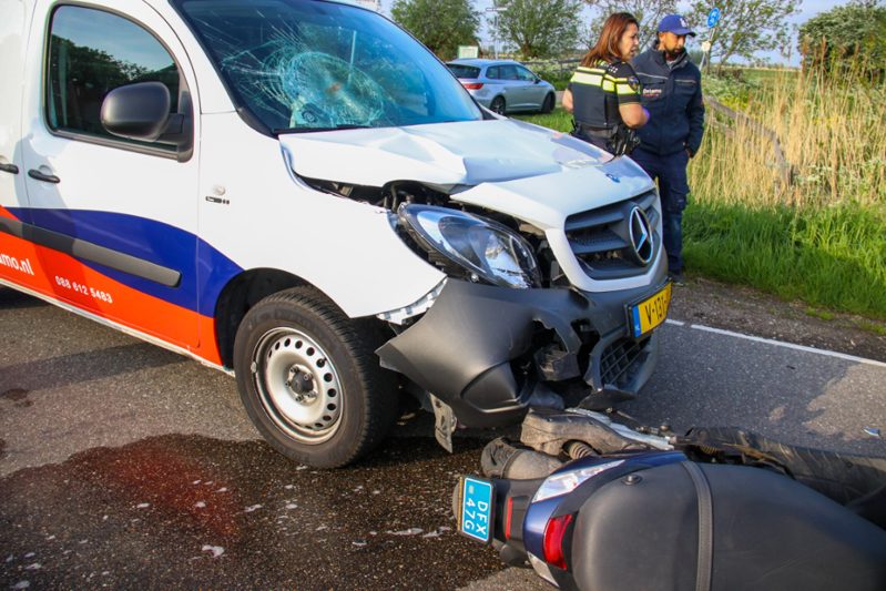 Schiedam – Op de kruising Harreweg – Oostveenseweg heeft woensdagavond een aanrijding plaatgevonden tussen een auto en een scooter.