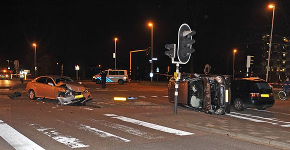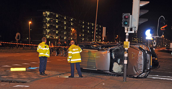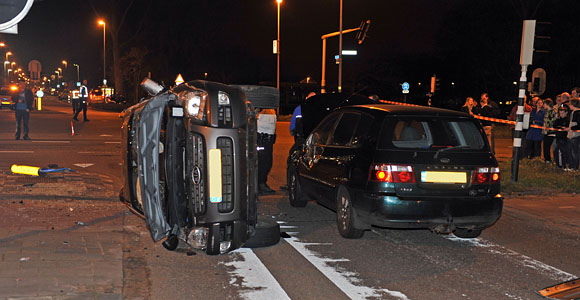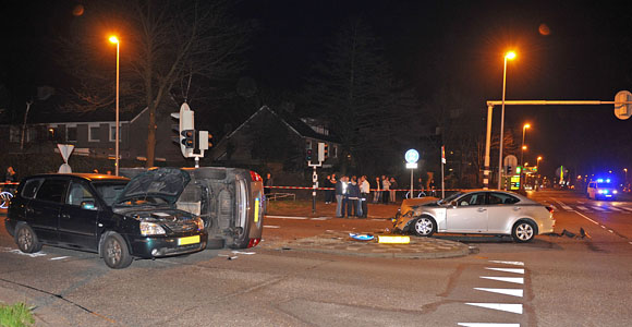 Leiderdorp – Donderdag 22 maart omstreeks kwart voor tien ’s avonds vond er een verkeersongeval plaats op de Engelendaal waarbij één auto over de kop sloeg. Een 31-jarige automobilist uit Voorhout reed over de Engelendaal in de richting van de Willem de Zwijgerlaan. Een 44-jarige Leiderdorpse reed over de Vronkenlaan en vervolgens de Engelendaal op. Daar kwam ze in botsing met de Voorhouter waarna de auto van de Leiderdorpse over de kop sloeg. Haar auto kwam hierna tot stilstand tegen een derde auto die vanaf de Heinsiuslaan richting de Engelendaal reed. De vrouw werd met onbekend letsel overgebracht naar het ziekenhuis.