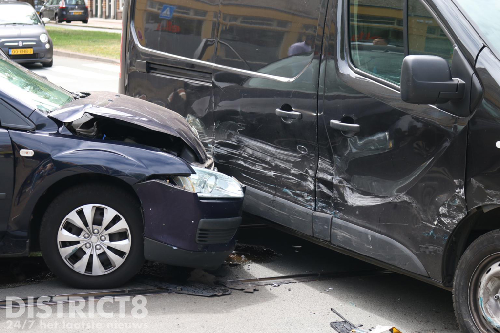Een automobilist kwam met de auto in de zijkant van een bedrijfsbus terecht. Dit gebeurde toen de automobilist via de trambaan de kruising op reed. In de voertuigen zaten meerdere inzittenden.