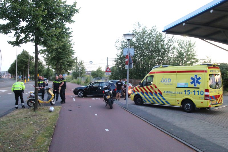Den Haag – Op de Waldorpstraat in Den Haag heeft zondagavond een aanrijding plaatsgevonden tussen een auto en een scooter.