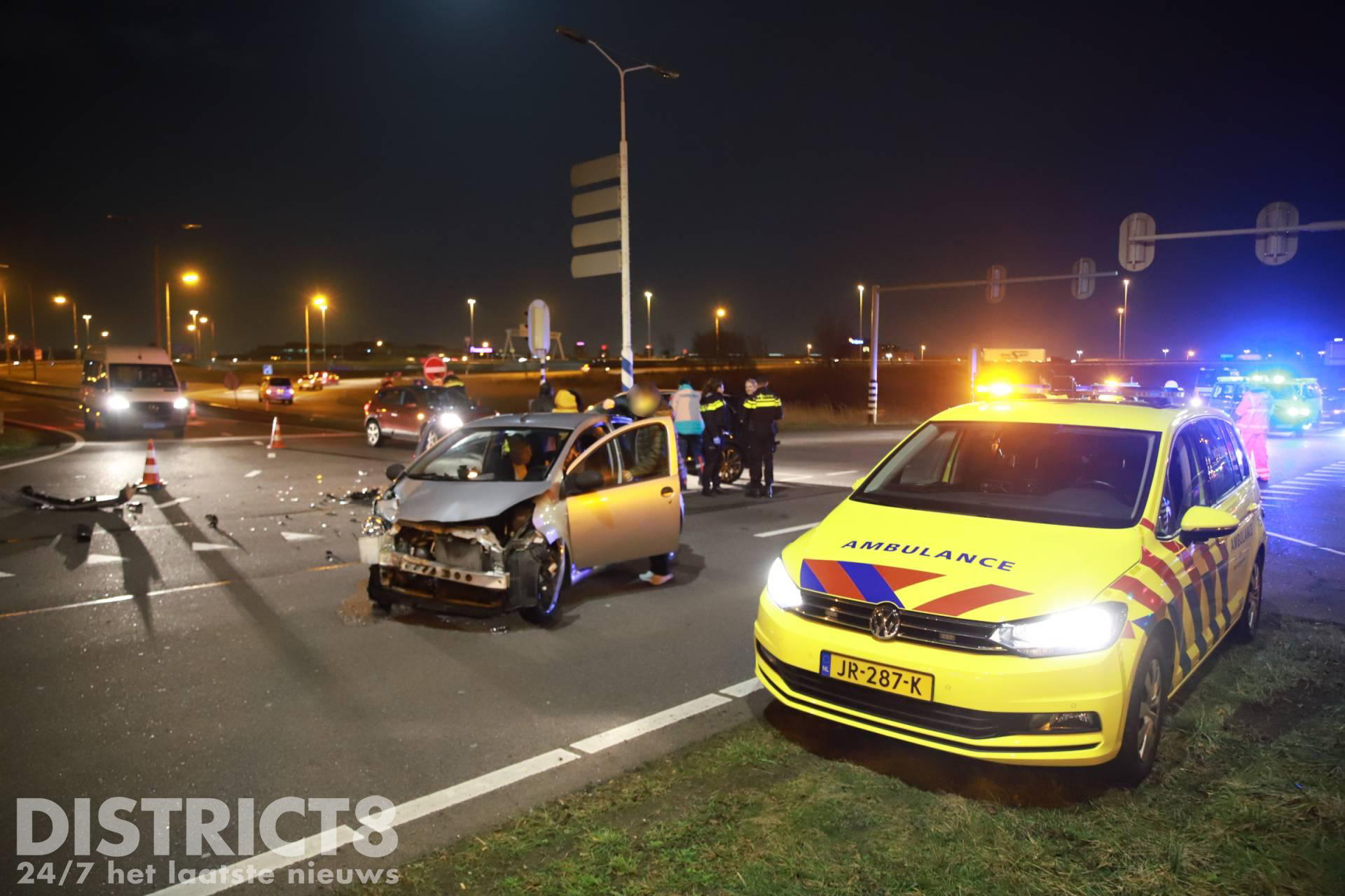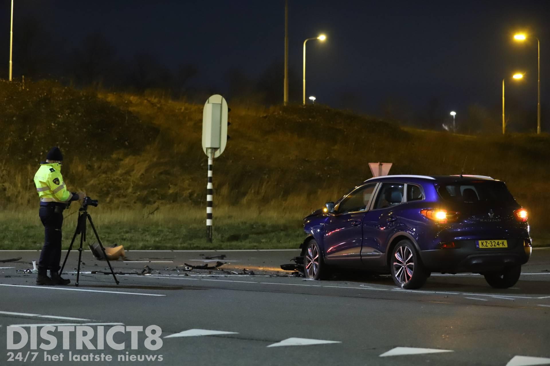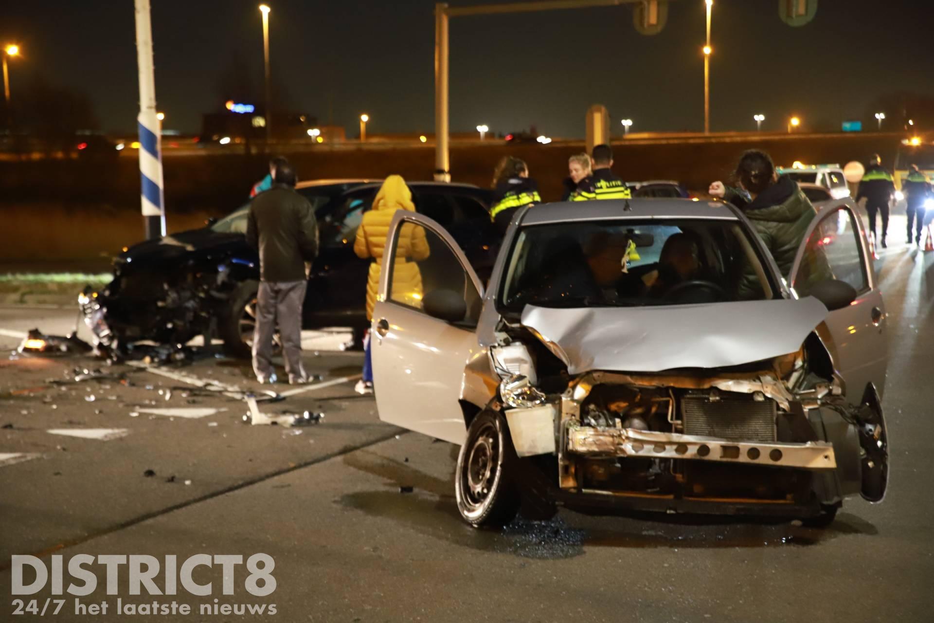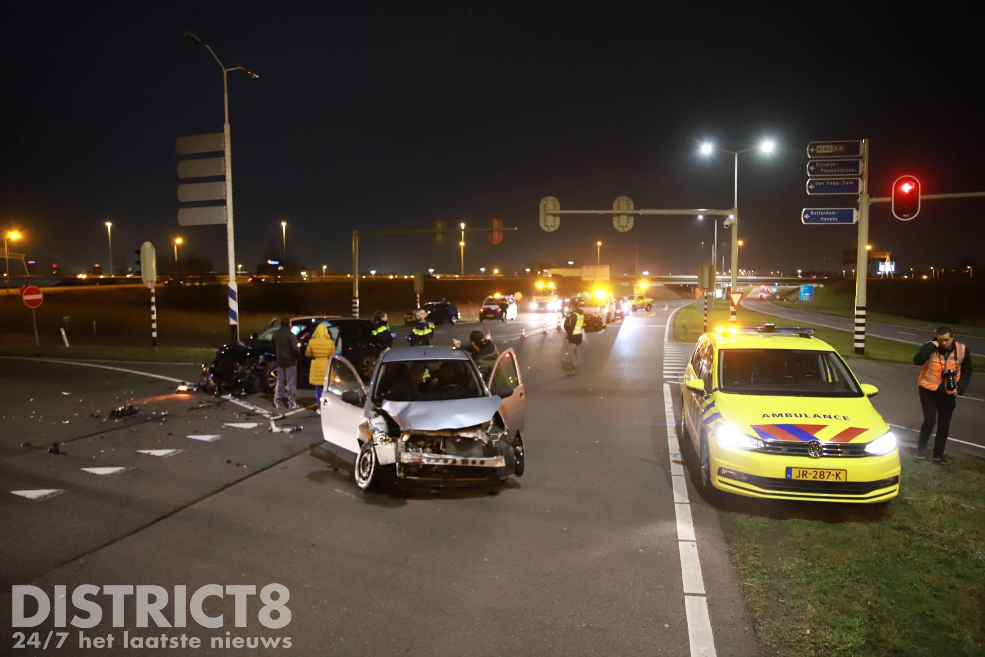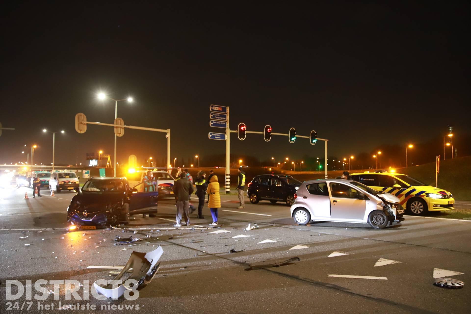 Op de kruising na de afrit vanaf de A4 ging het mis, de twee voertuigen kwamen met elkaar in botsing. Door de klap van de aanrijding raakte minimaal één inzittende gewond.