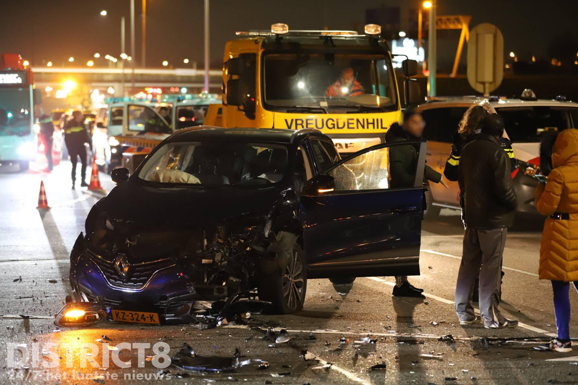 De schade aan de voertuigen is flink. De afrit van de A4 en een gedeelte van de kruising is afgesloten. De afdeling FO-Verkeer heeft onderzoek gedaan. Beide betrokken voertuigen zijn door een politieberger afgevoerd.
