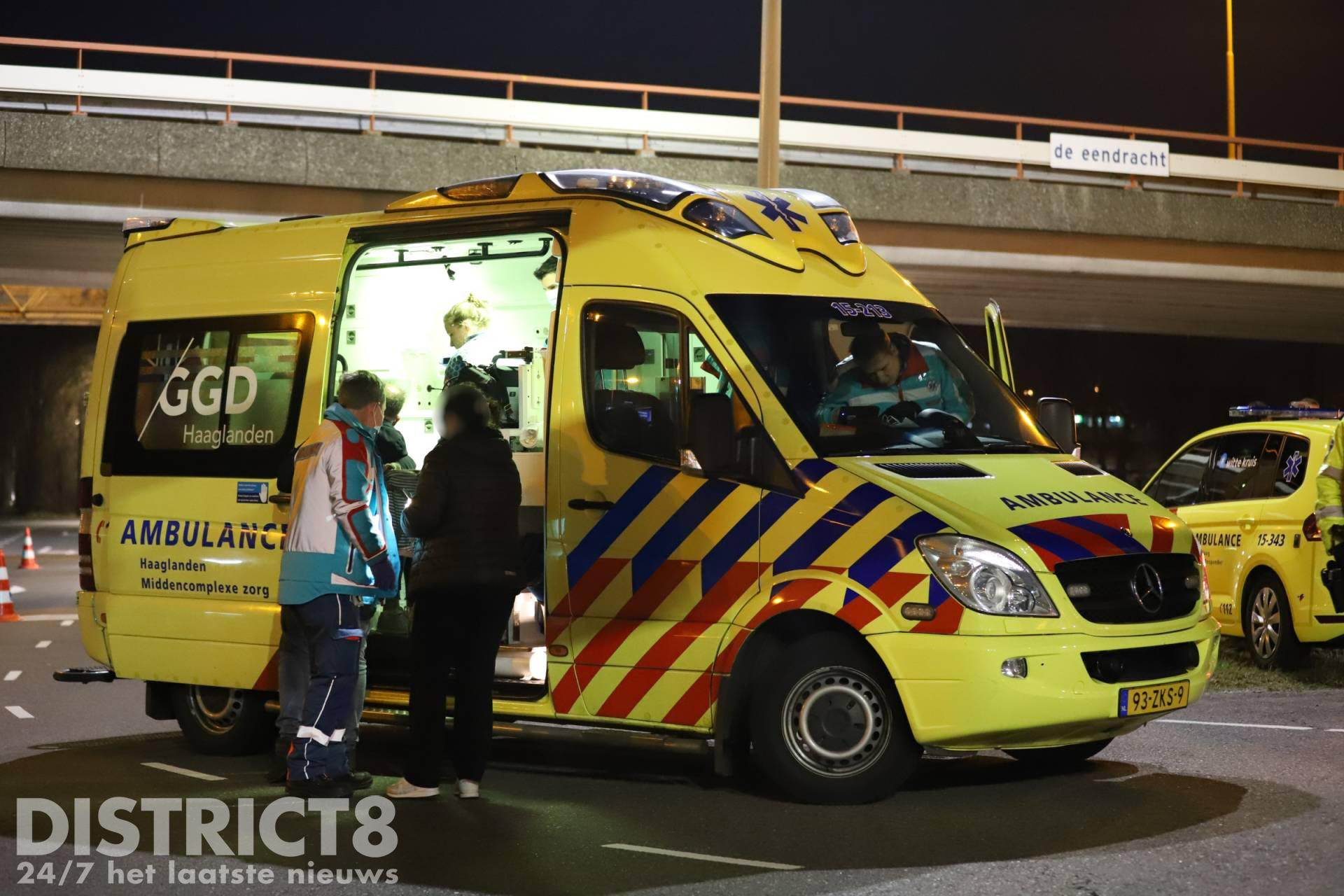Twee personen zijn door de verpleegkundige van een rapid responder van de ambulance nagekeken. Voor één van de personen is een ambulance ter plaatse.