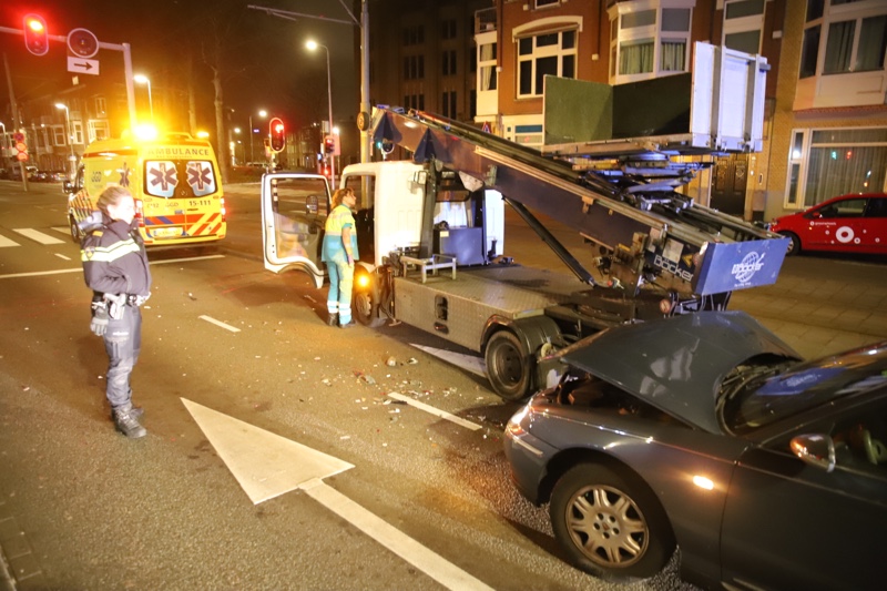 Den Haag – Op de Weteringkade in Den Haag heeft vrijdagavond 21 februari een ongeval plaatsgevonden tussen een auto en een mobiele hoogwerker.