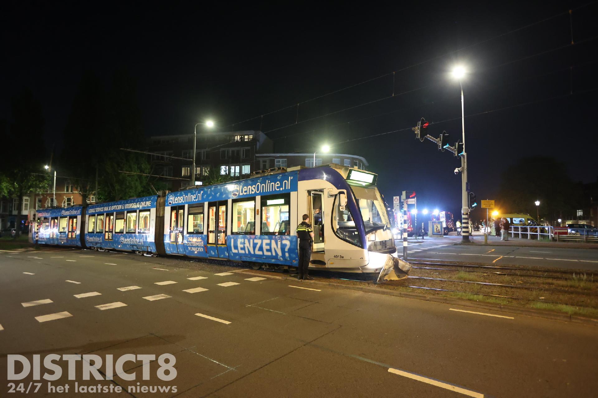 Den Haag – Op het Koningin Emmaplein in Den Haag heeft zaterdagavond 13 mei een aanrijding plaatsgevonden tussen een auto en een tram.