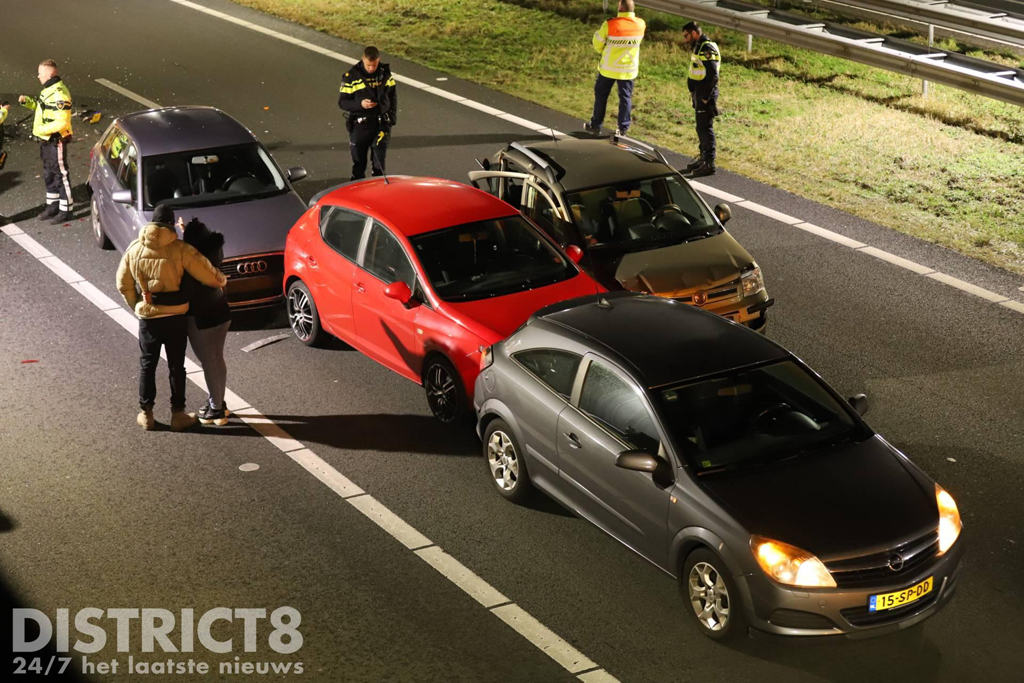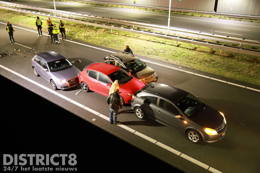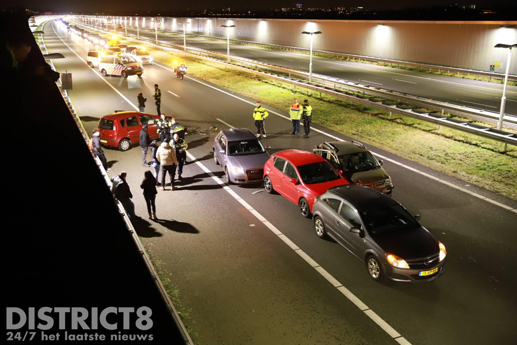 Schipluiden – Op de A4 bij Schipluiden zijn vanavond vijf voertuigen betrokken geraakt bij een ongeval.