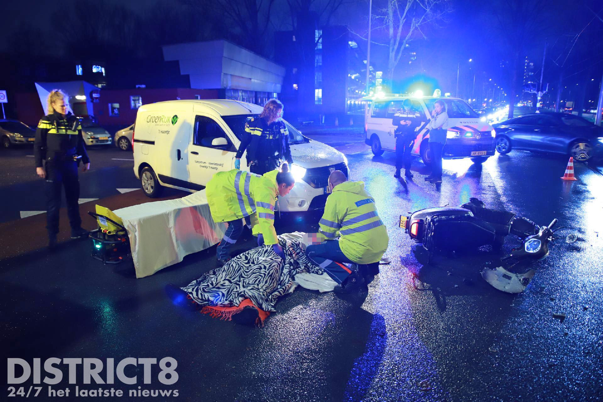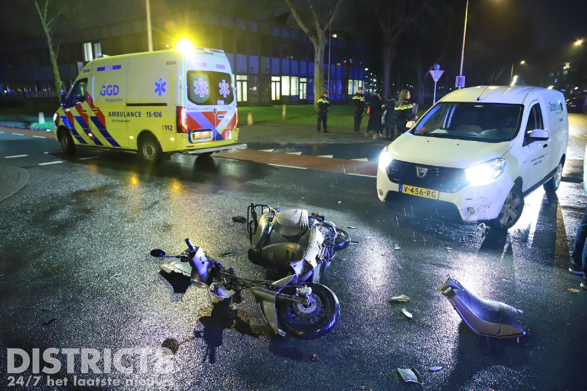 Delft – Dinsdagavond 20 december is de bestuurder van een scooter gewond geraakt bij een aanrijding op de kruising van de Buitenhofdreef met de Bachsingel in Delft.