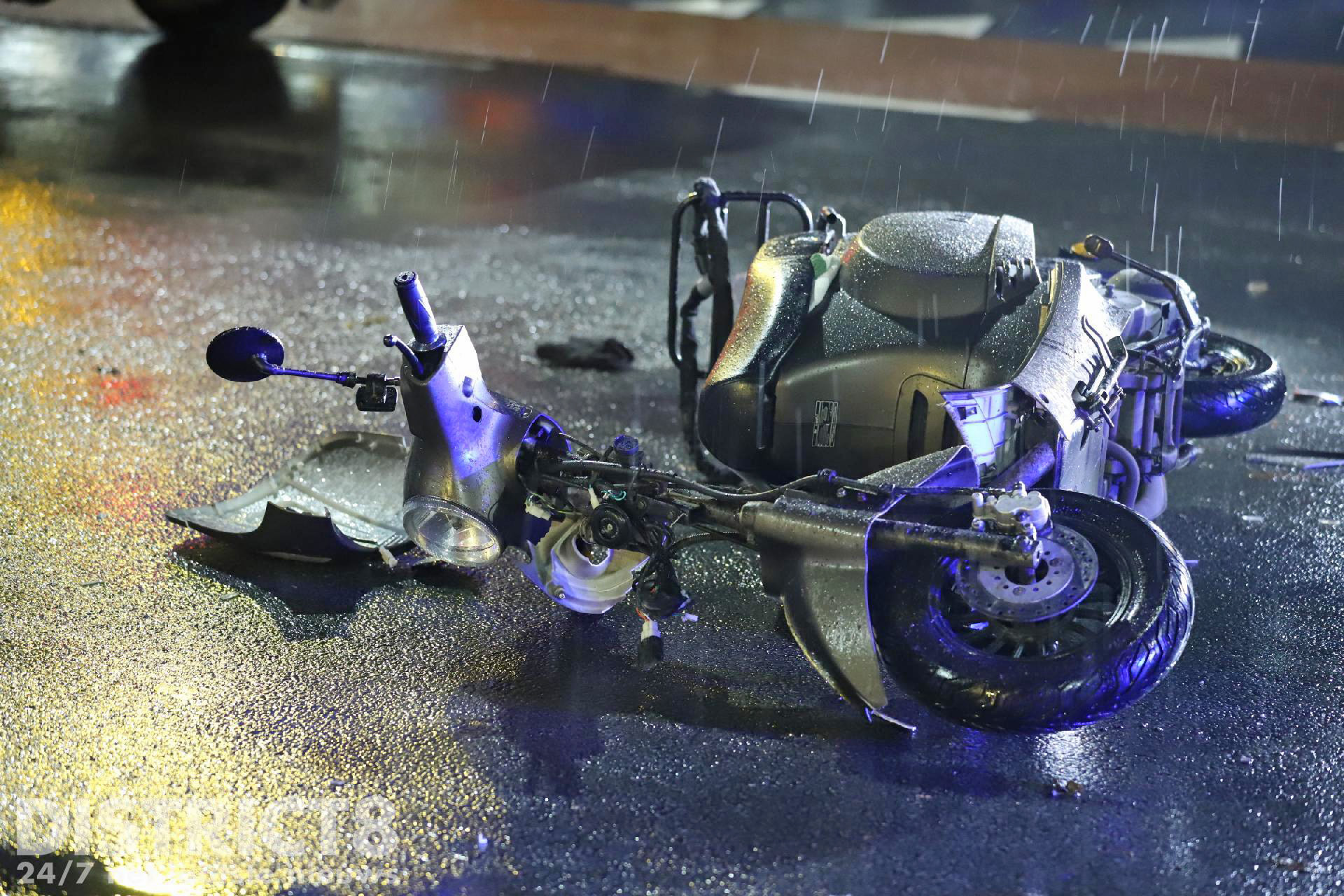 De politie en de ambulancedienst kwamen met spoed ter plaatse om de gewonde scooterbestuurder te controleren. Na controle door het ambulancepersoneel bleek vervoer naar het ziekenhuis niet noodzakelijk. De politie heeft in verband met het ongeval de Buitenhofdreef afgesloten richting de Kruithuisweg. De scooter liep door de aanrijding flinke schade op.