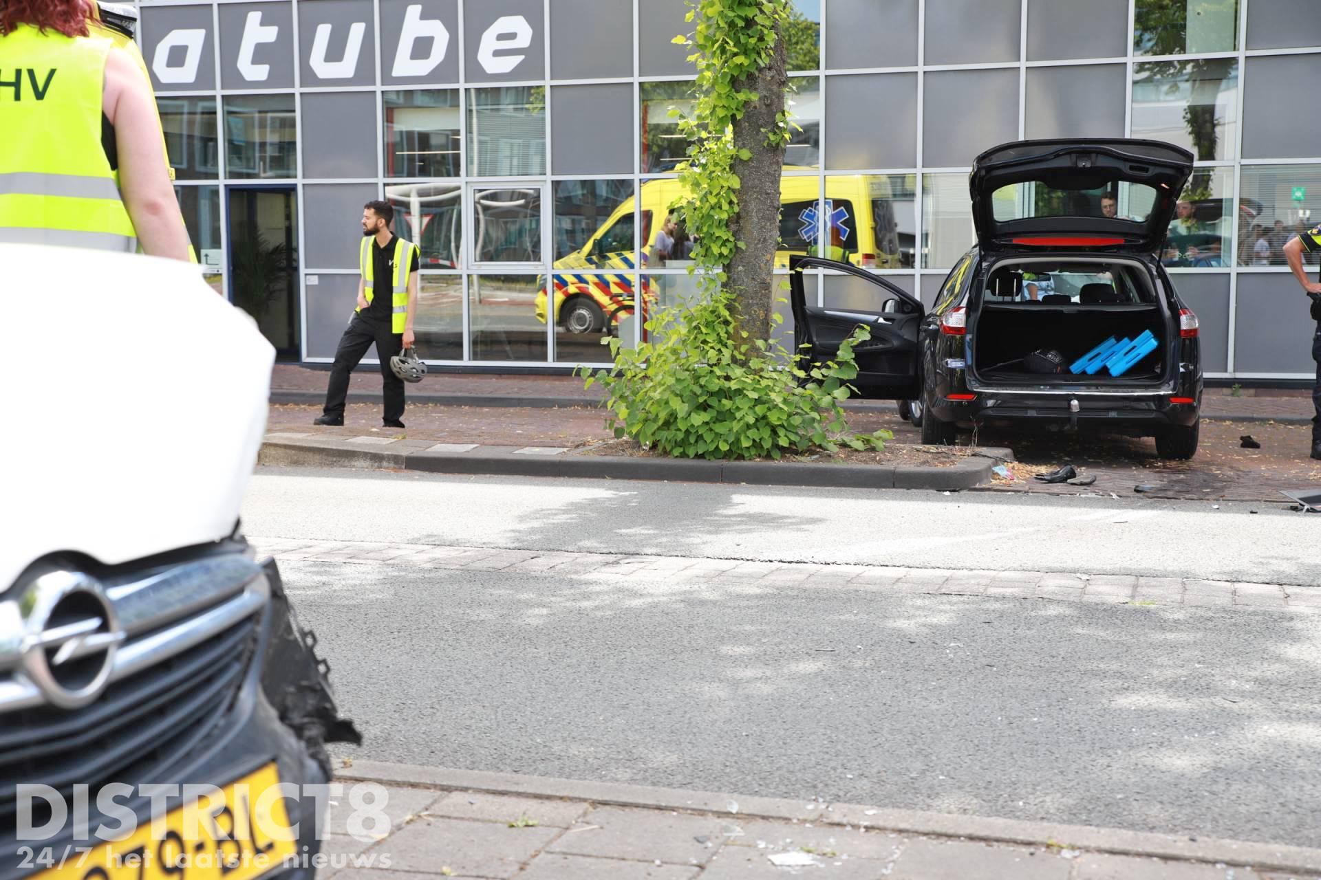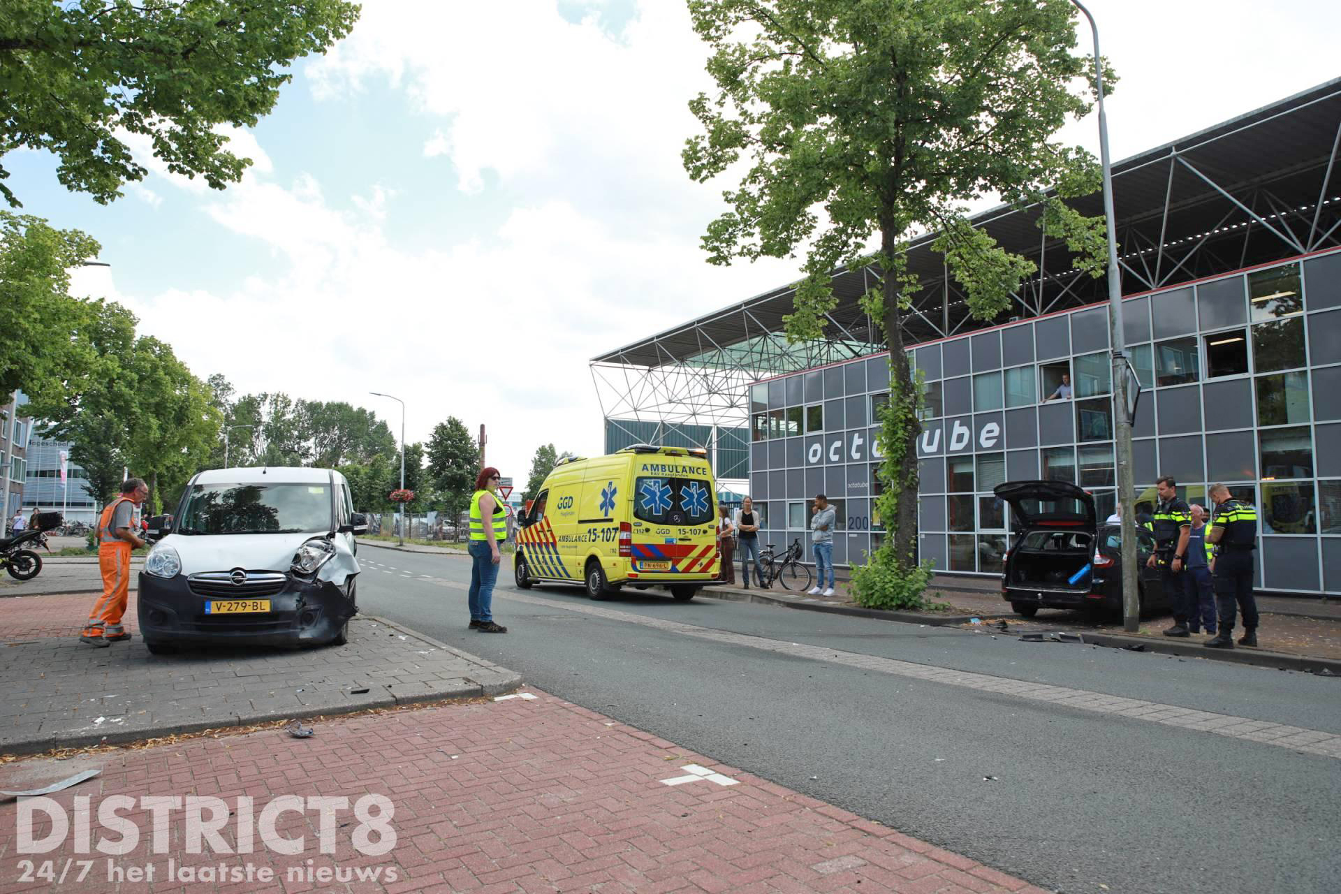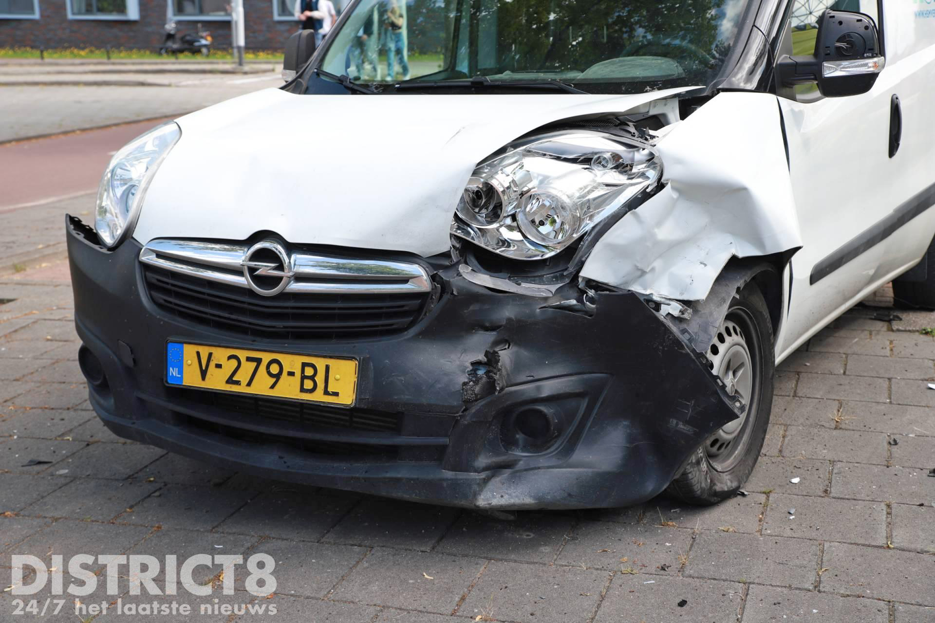 Door de klap schoot en van de auto’s achteruit over een stoeprand, de auto kwam bijna tot stilstand tegen een bedrijfspand. De bestuurster van de personenauto raakte gewond en is door ambulancepersoneel naar het ziekenhuis vervoerd.
