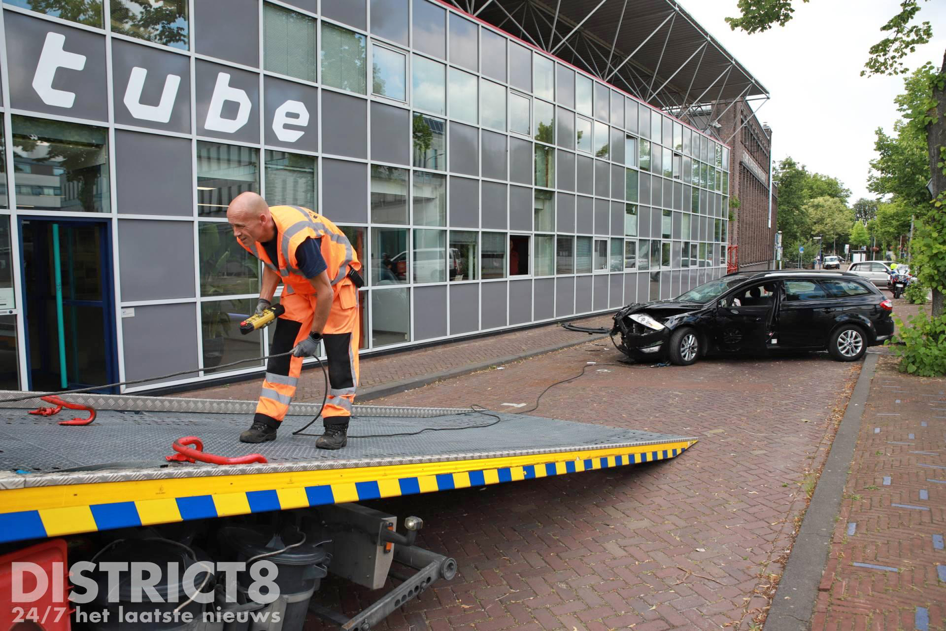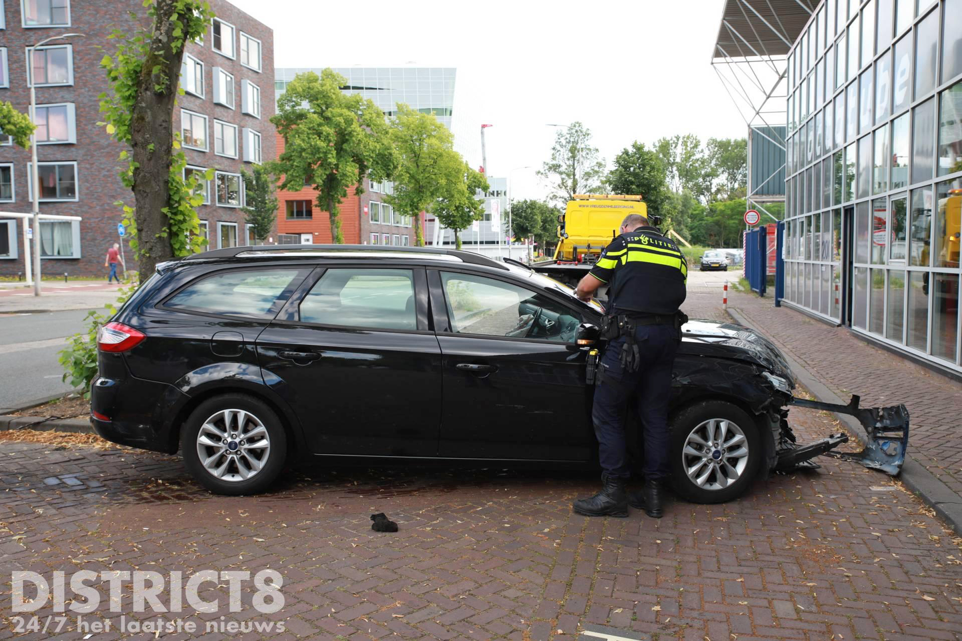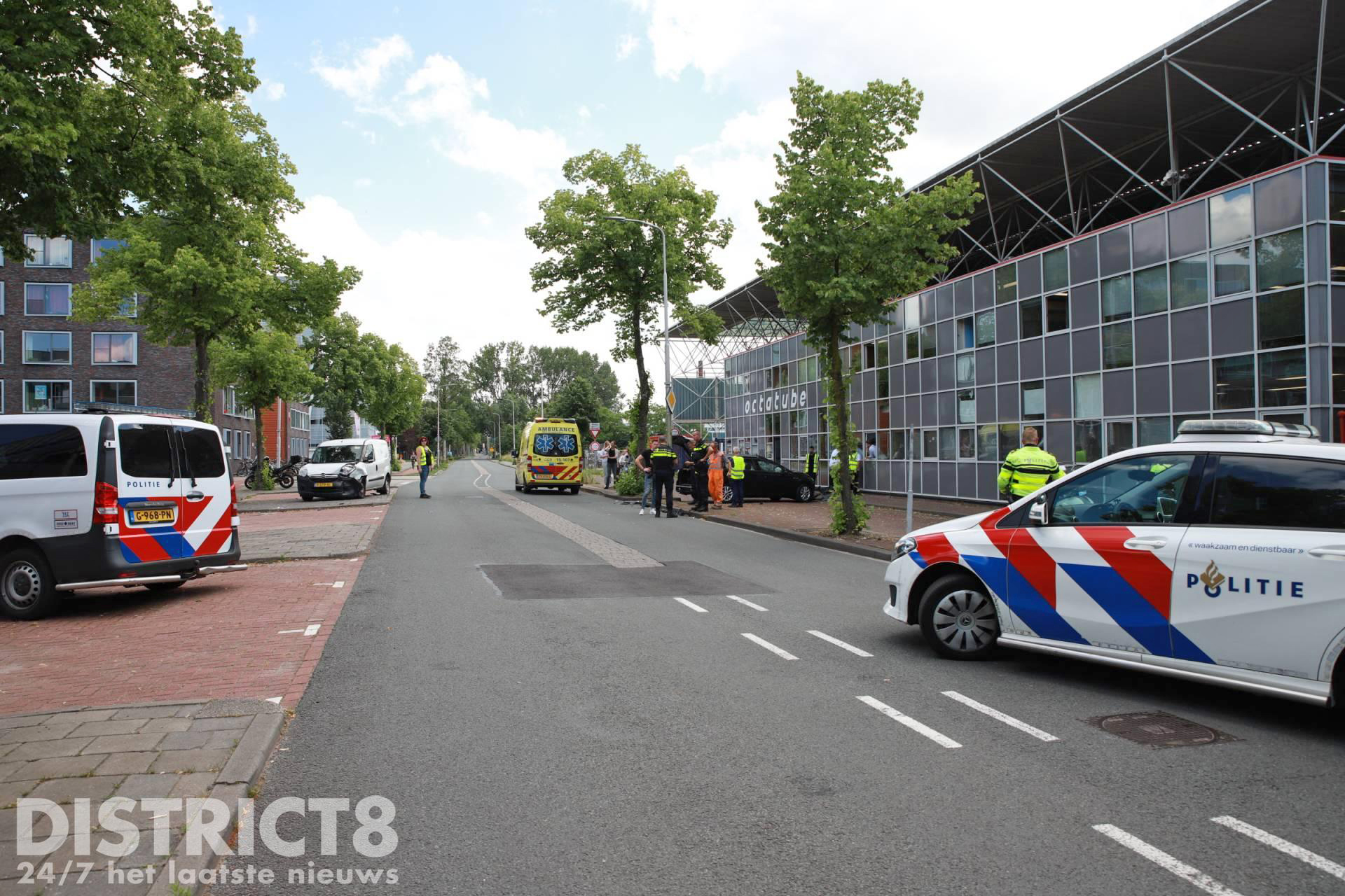 Door de klap schoot en van de auto’s achteruit over een stoeprand, de auto kwam bijna tot stilstand tegen een bedrijfspand. De bestuurster van de personenauto raakte gewond en is door ambulancepersoneel naar het ziekenhuis vervoerd.