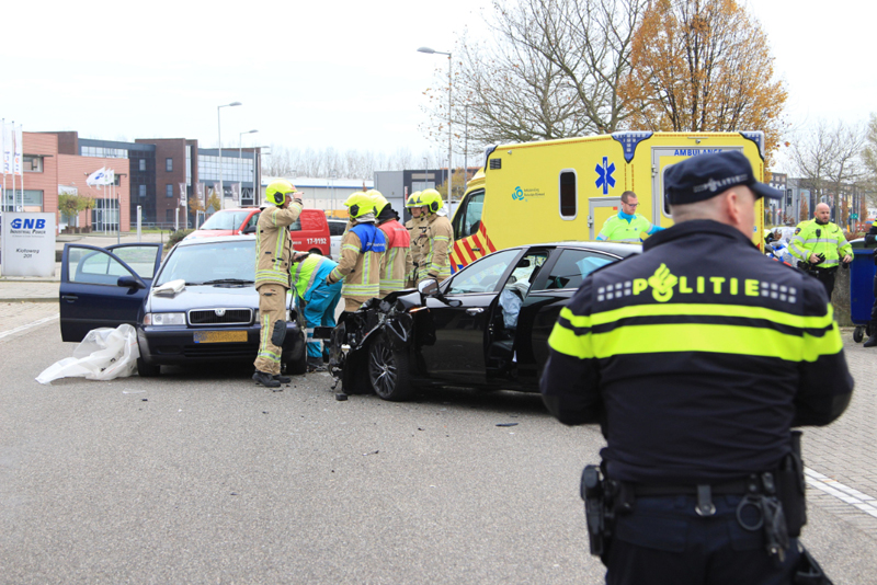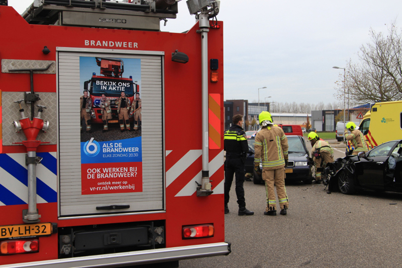 Twee auto’s botsten frontaal op elkaar. De brandweer kwam ter plaatse om het slachtoffer uit de auto te bevrijden. Beide voertuigen raakte zwaar beschadigd.