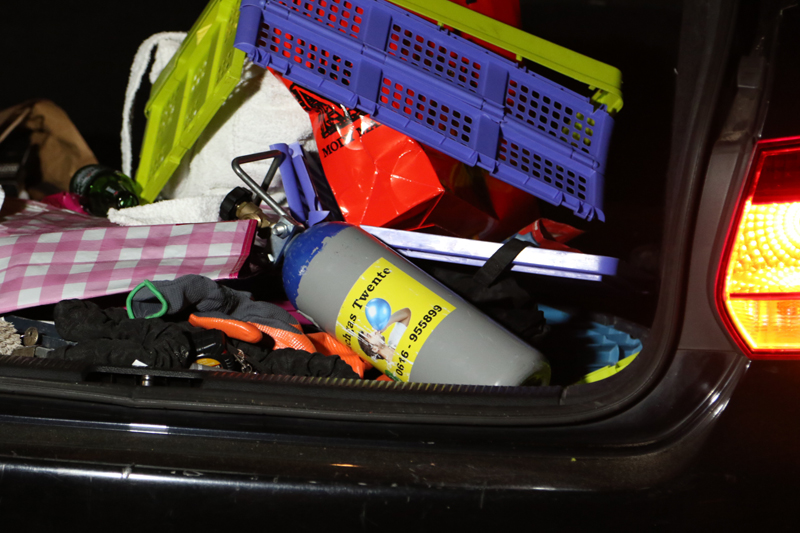 In de auto werd een fles met lachgas aangetroffen. Of de bestuurder tijdens zijn rit ook bezig was van het inhaleren van het lachgas is onbekend.