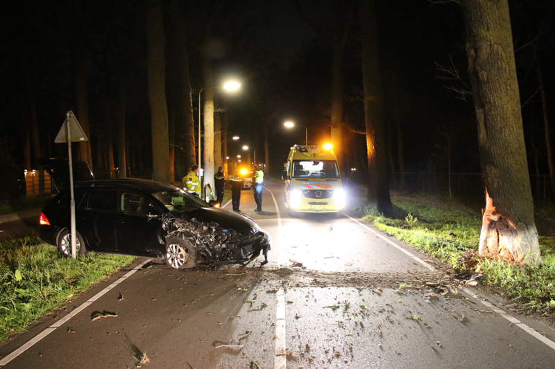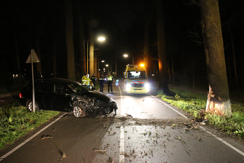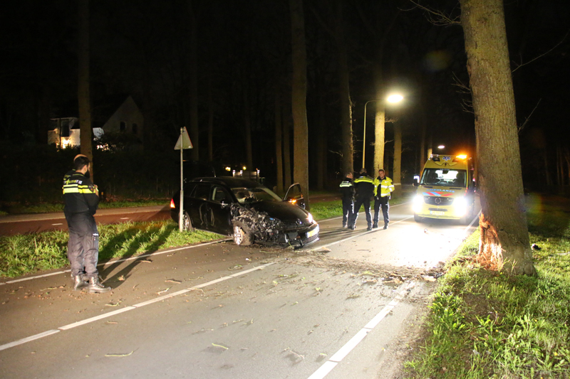 Door nog onbekende oorzaak kwam de bestuurder in de berm terecht en knalde met zijn rechter voorkant tegen de boom. De auto kwam tot stilstand aan de overkant van de weg.