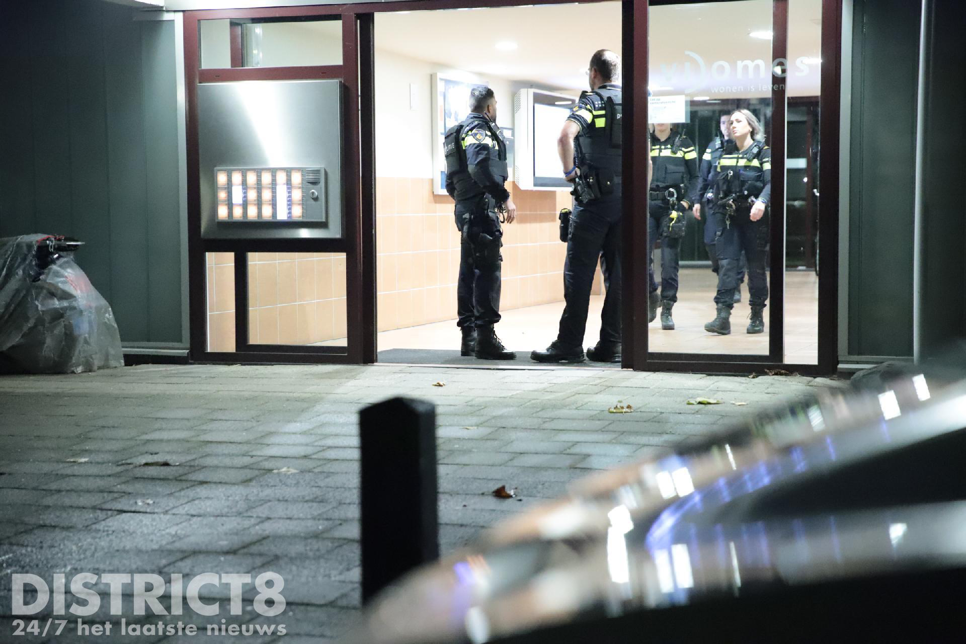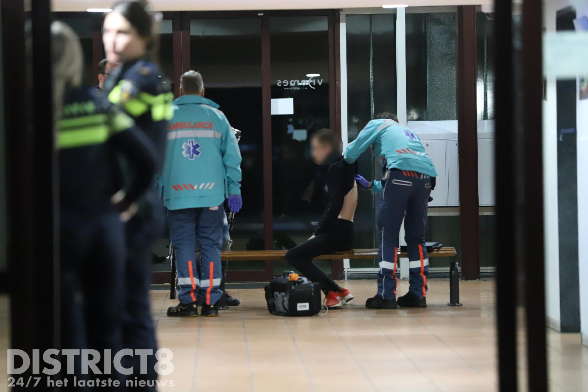 Bij de flat waar de melding werd gedaan werd een gewonde jongeman aangetroffen. Hij werd door de ambulancedienst onderzocht, maar hoefde niet mee naar het ziekenhuis.