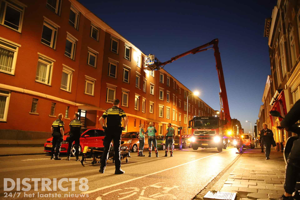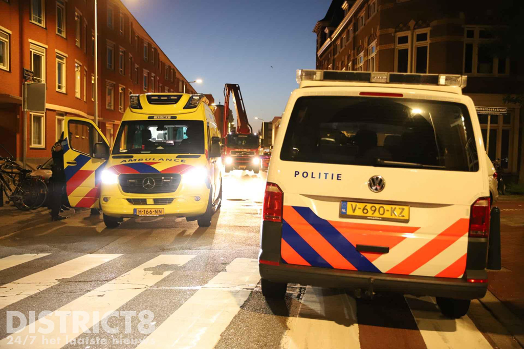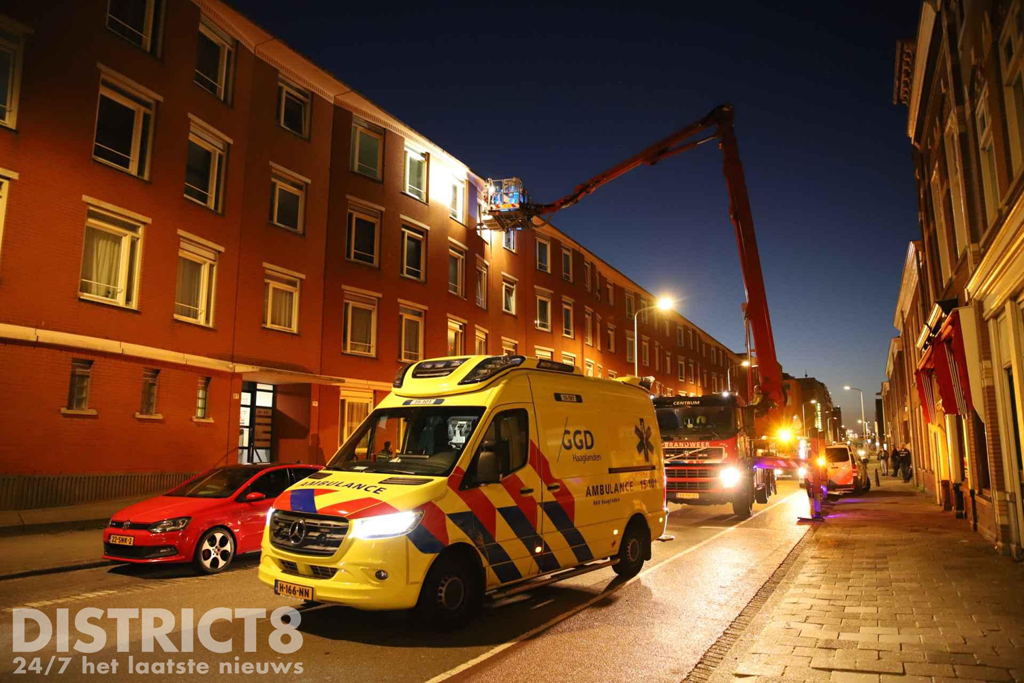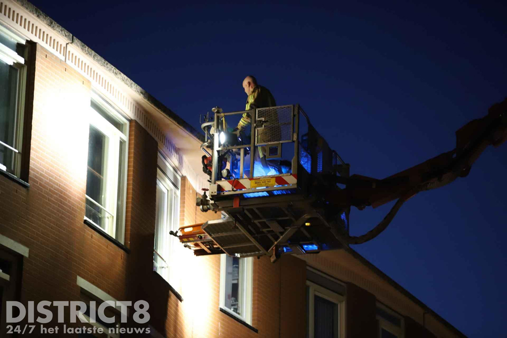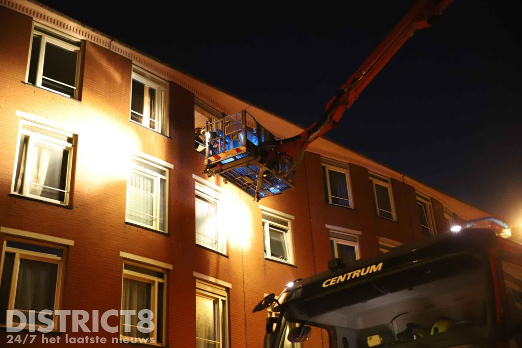 Nadat het slachtoffer met een hoogwerker van de brandweer naar beneden was gebracht, kon zij met spoed worden vervoerd naar het ziekenhuis.