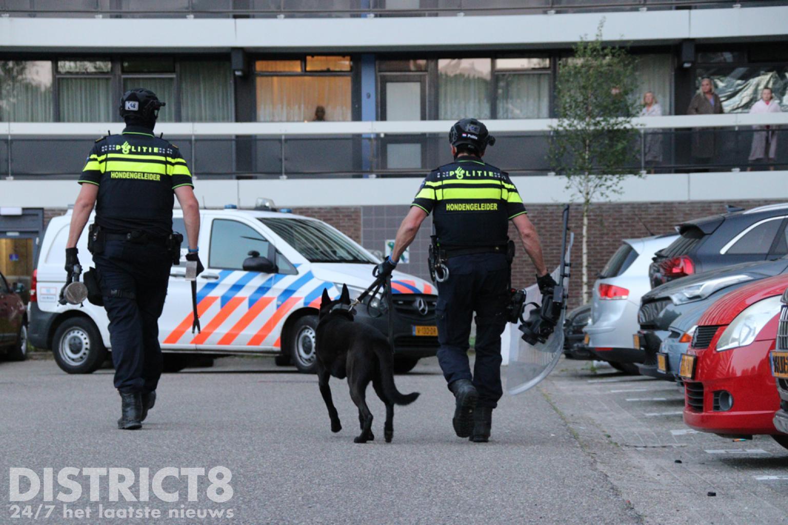 Hondengeleiders kwamen ook ter plaatse en hebben ondersteund bij de instap in de woning. Bij de instap heeft de politie één persoon aangehouden.