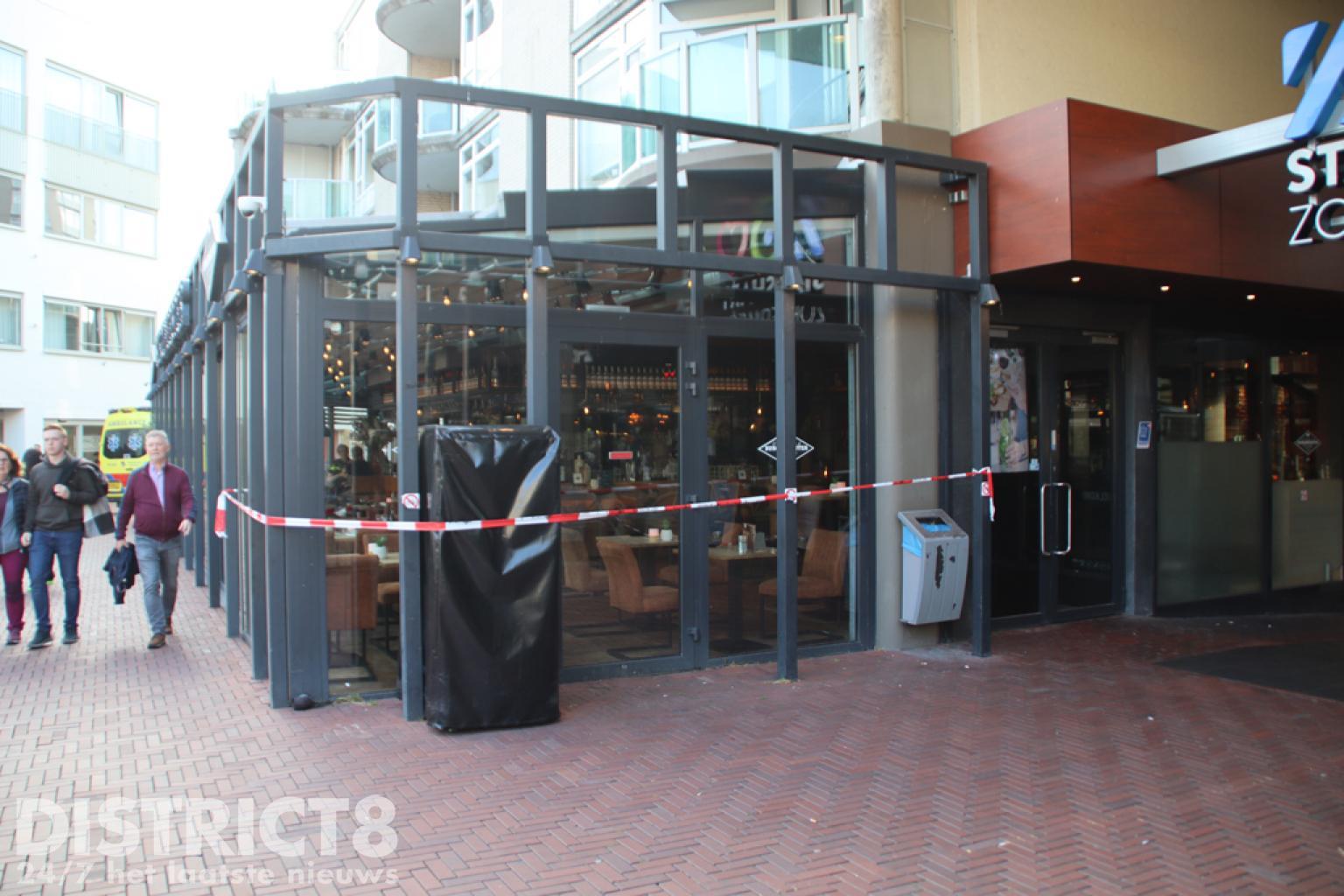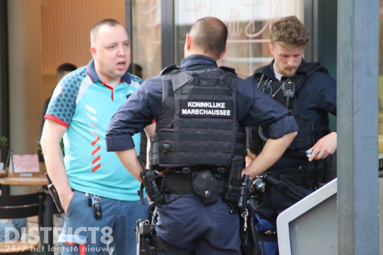 Het restaurant en een gedeelte van het Stadhuisplein is afgesloten. De verdachte heeft vermoedelijk iets weggegooid in een put, de brandweer is gealarmeerd om de politie te assisteren.