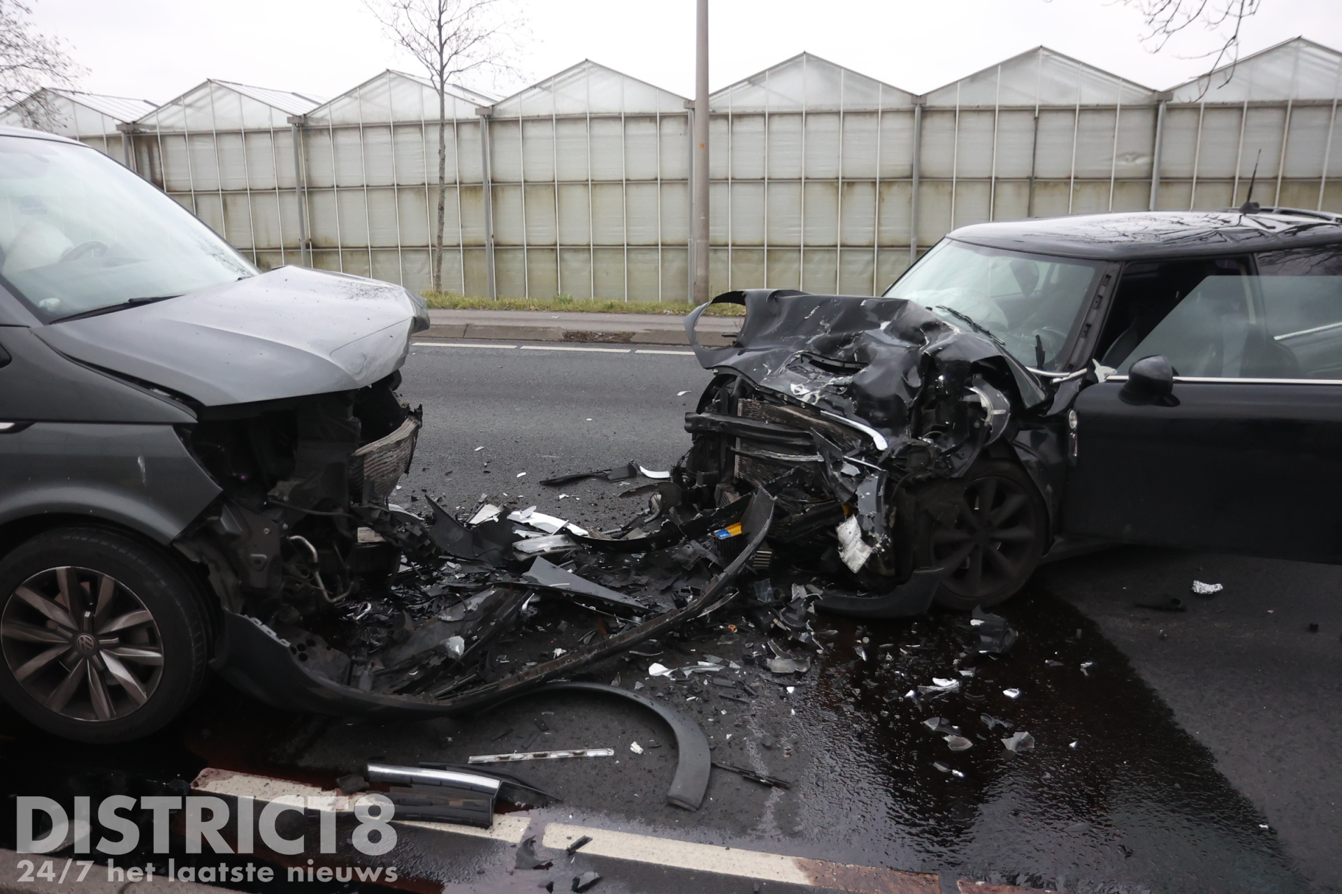 Omstreeks 16:15 uur ging het mis. Door nog onbekende oorzaak kwamen twee voertuigen frontaal in botsing met elkaar.