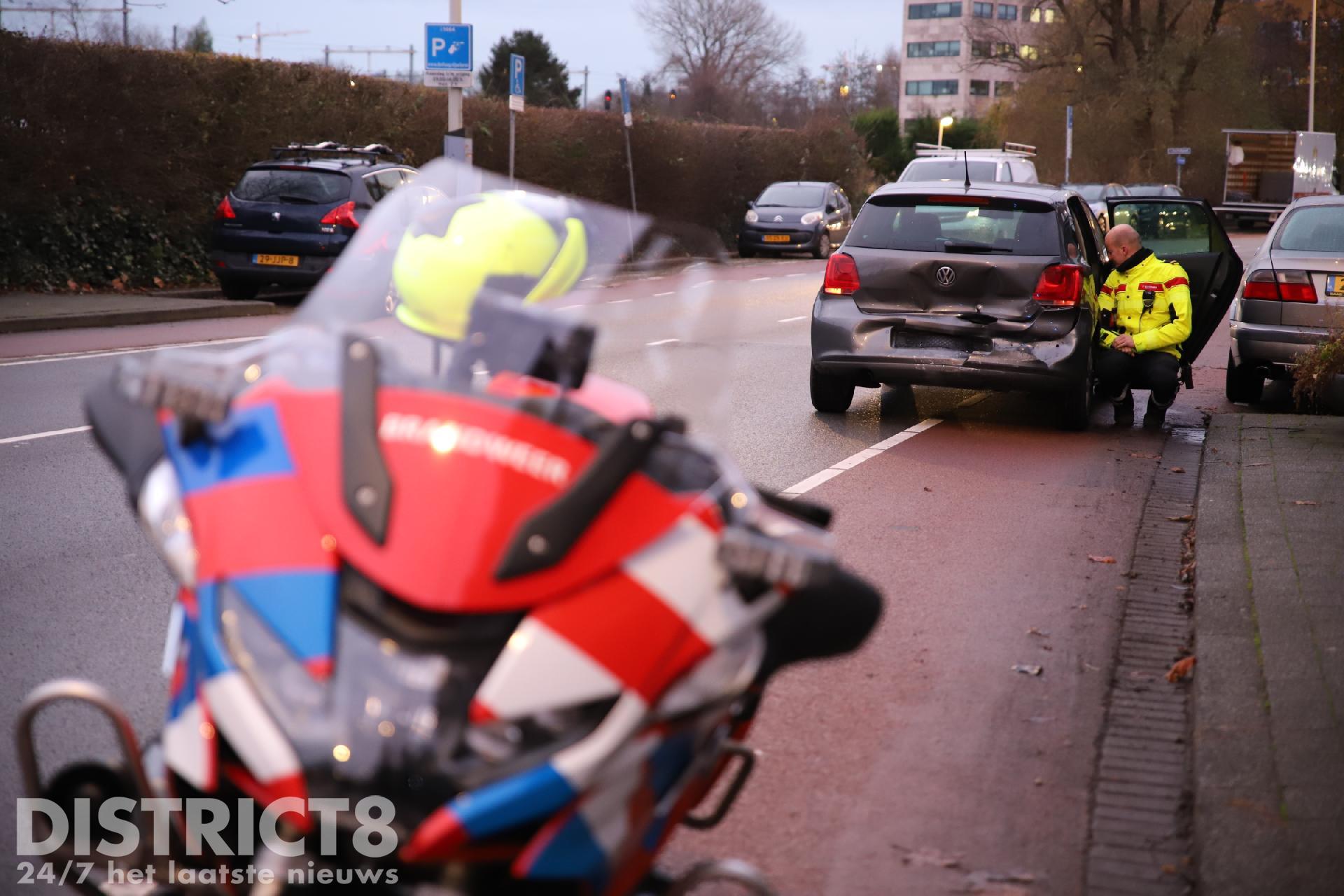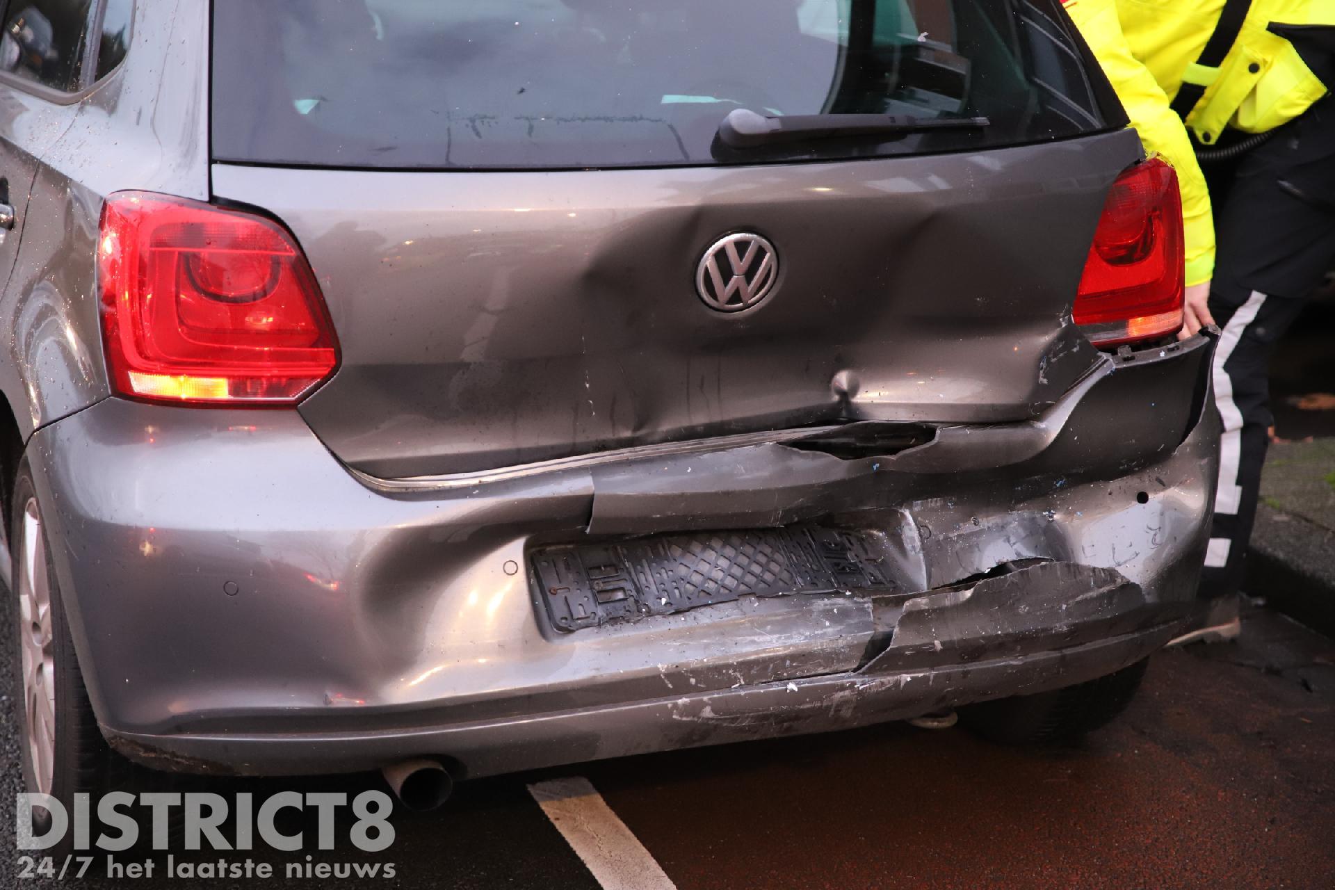 Twee autos kwamen met elkaar in botsing toen een automobilist remde voor overstekende fietsers. De auto die hier achter reed zag dit te laat en botste achterop.