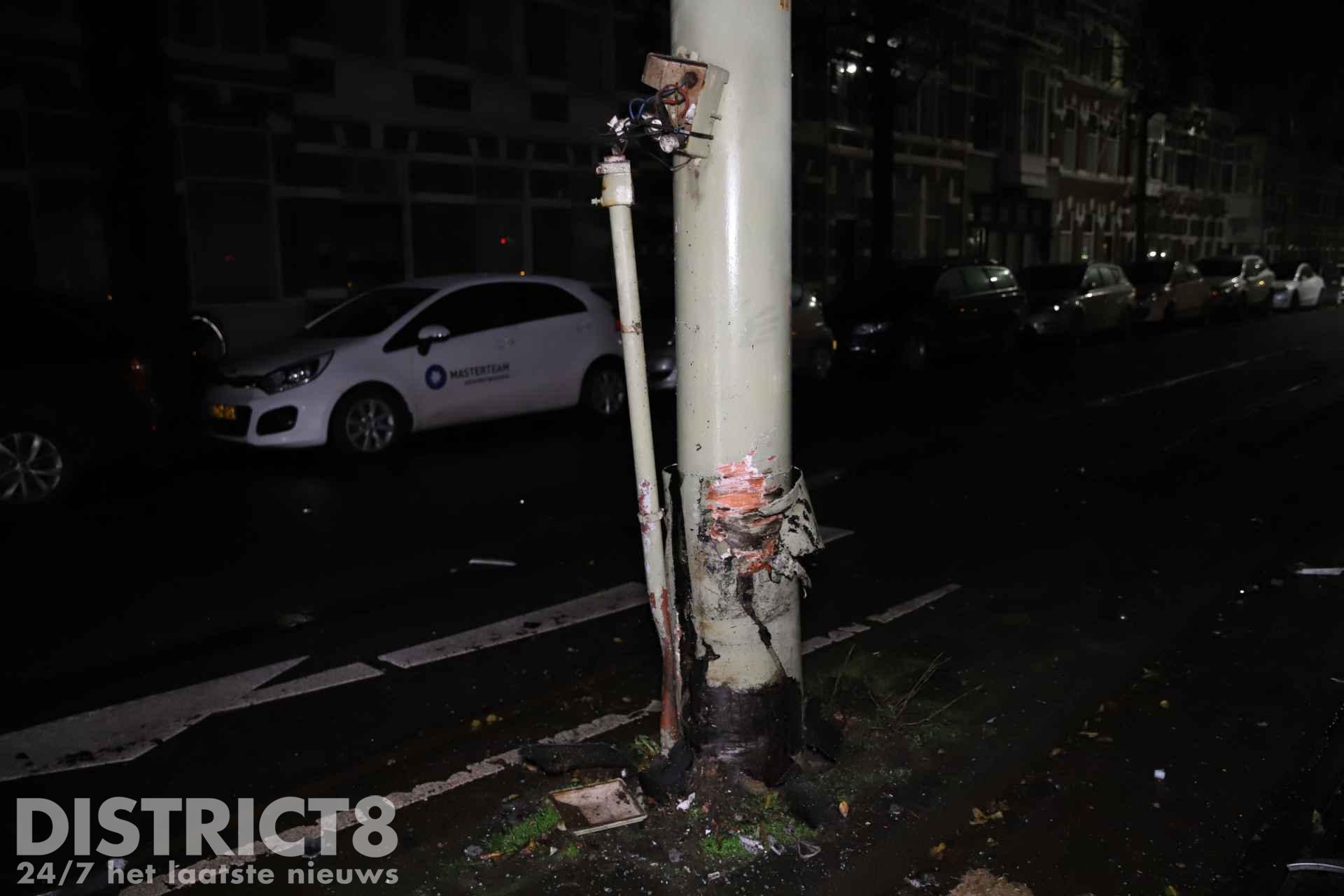 Na onderzoek van FO-Verkeer heeft de politieberger de auto weggesleept. Het glas en de andere brokstukken worden door de gemeente weggeveegd. De beschadigde bovenleidingspaal is door de HTM gerepareerd.