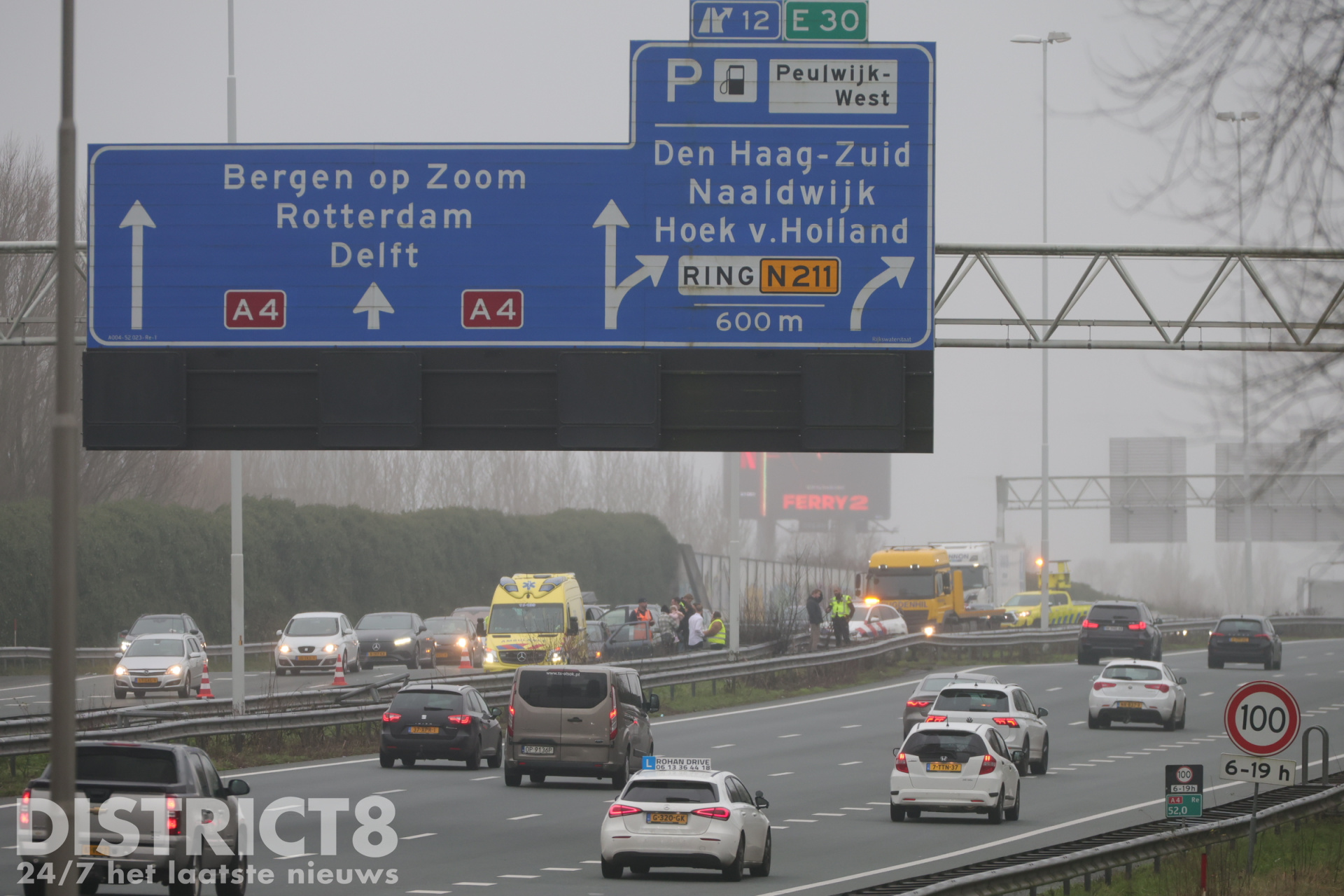 Rijswijk – Bij een aanrijding op de A4 ter hoogte van Rijswijk is donderdagmiddag 26 december iemand gewond geraakt. Door nog onbekende oorzaak botste een automobilist achterop zijn voorganger.
