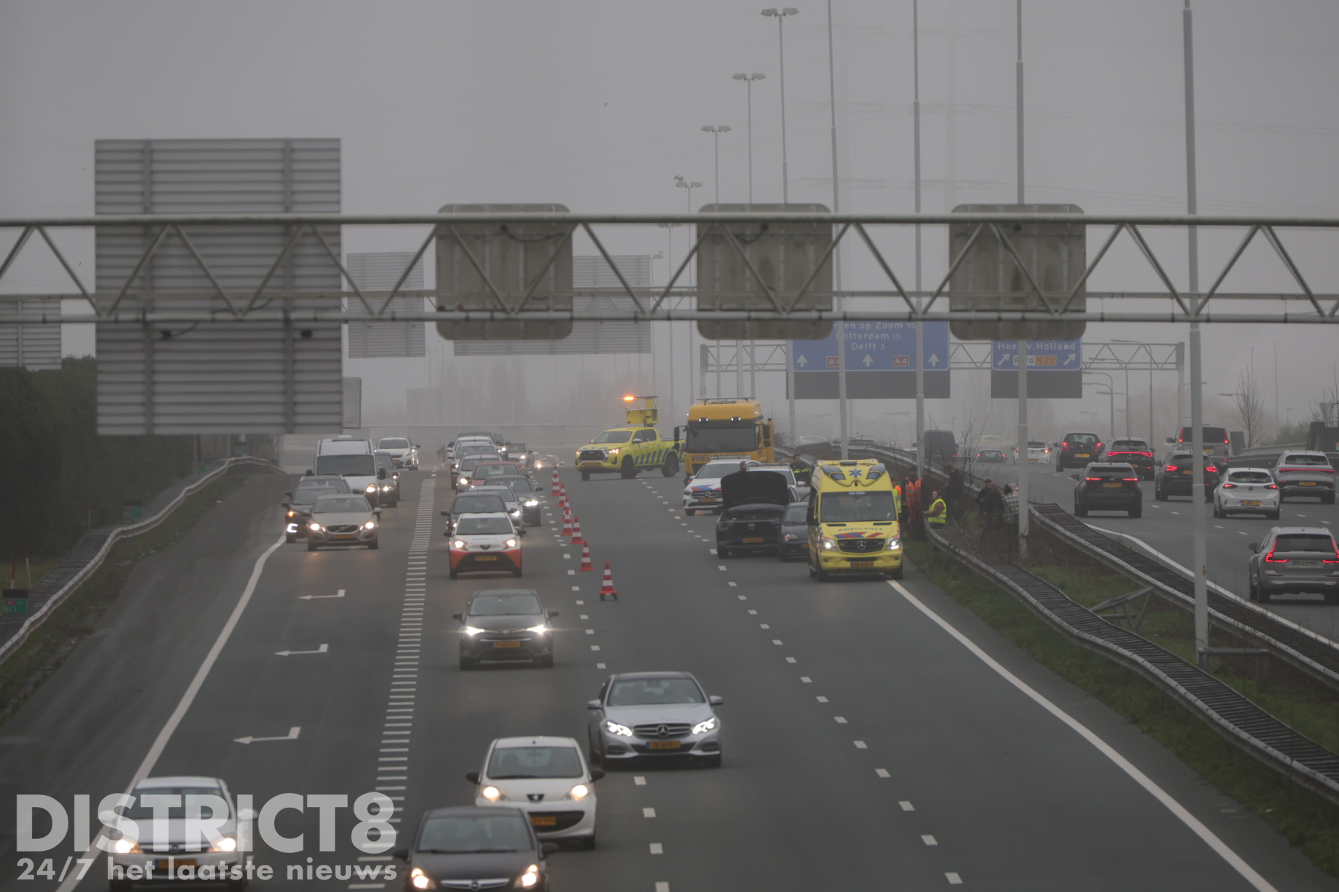 Door het ongeval waren twee rijstroken dicht tussen Den Hoorn en Rijswijk.