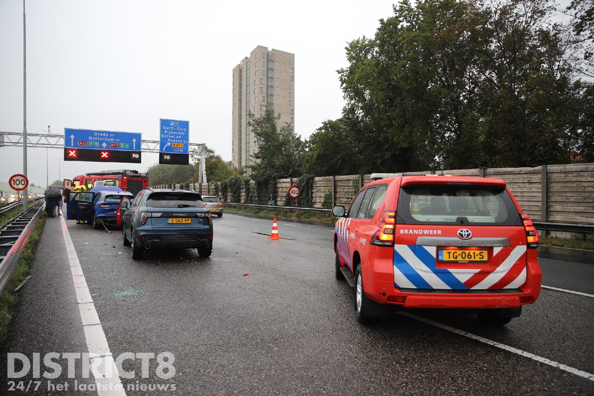 Delft – Op de A13 bij Delft heeft donderdagochtend 12 oktober een aanrijding plaatsgevonden tussen drie personenauto’s. Iets voor 08:00 ging het mis net voor de afrit van de N470.