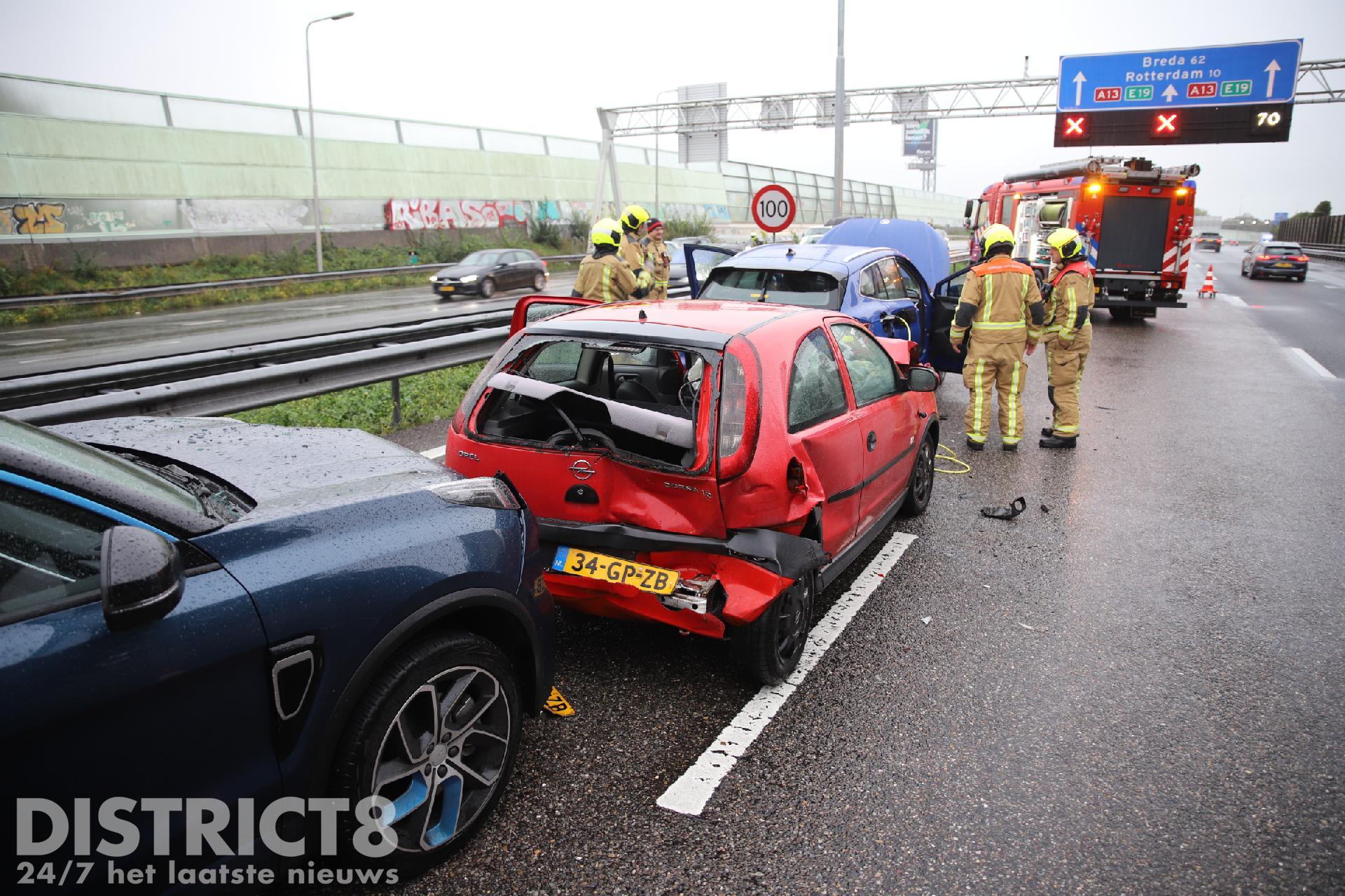 Hierdoor is de kans kleiner dat de auto spontaan begint te rijden. Door het ongeval waren er twee rijstroken richting Rotterdam afgesloten, dit in verband met de berging van de drie voertuigen en omdat het wegdek gereinigd moet worden.