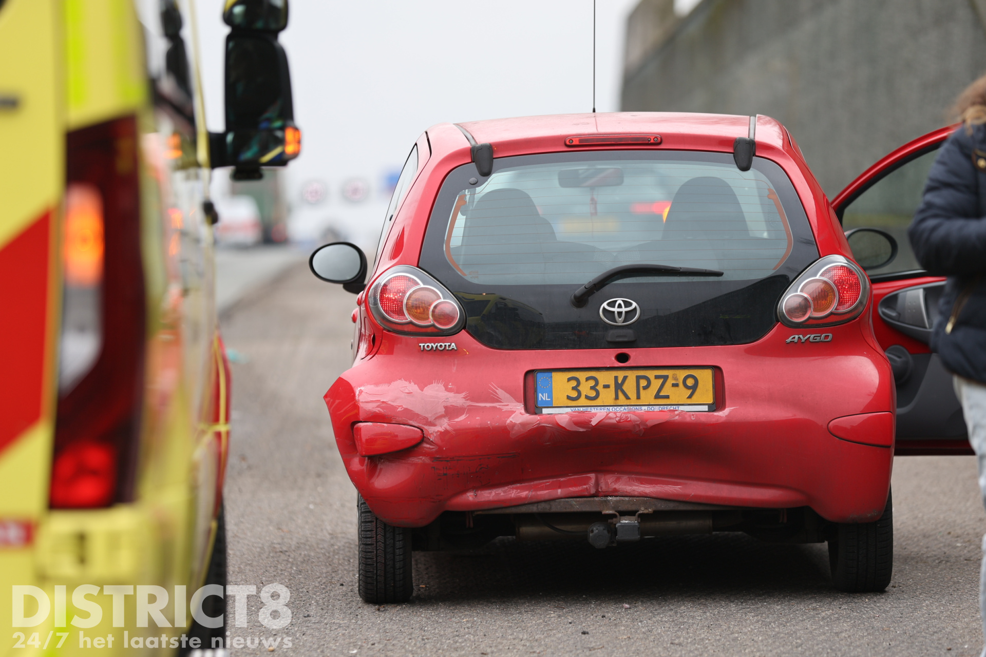 Politie, ambulancedienst en een berger kwamen met spoed ter plaatse. De bestuurder van de achterste auto is in de ambulance nagekeken en ter controle naar het ziekenhuis vervoerd.