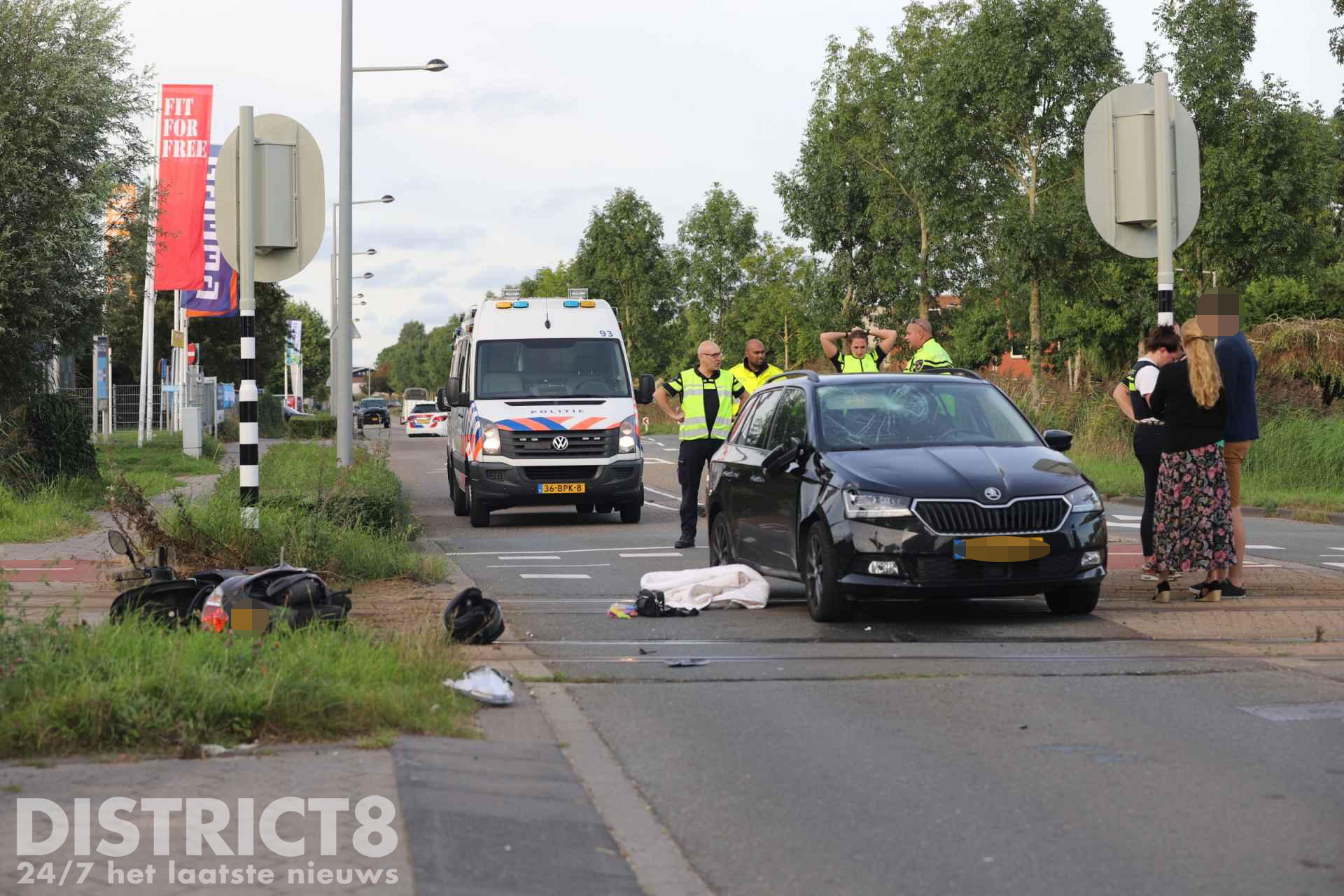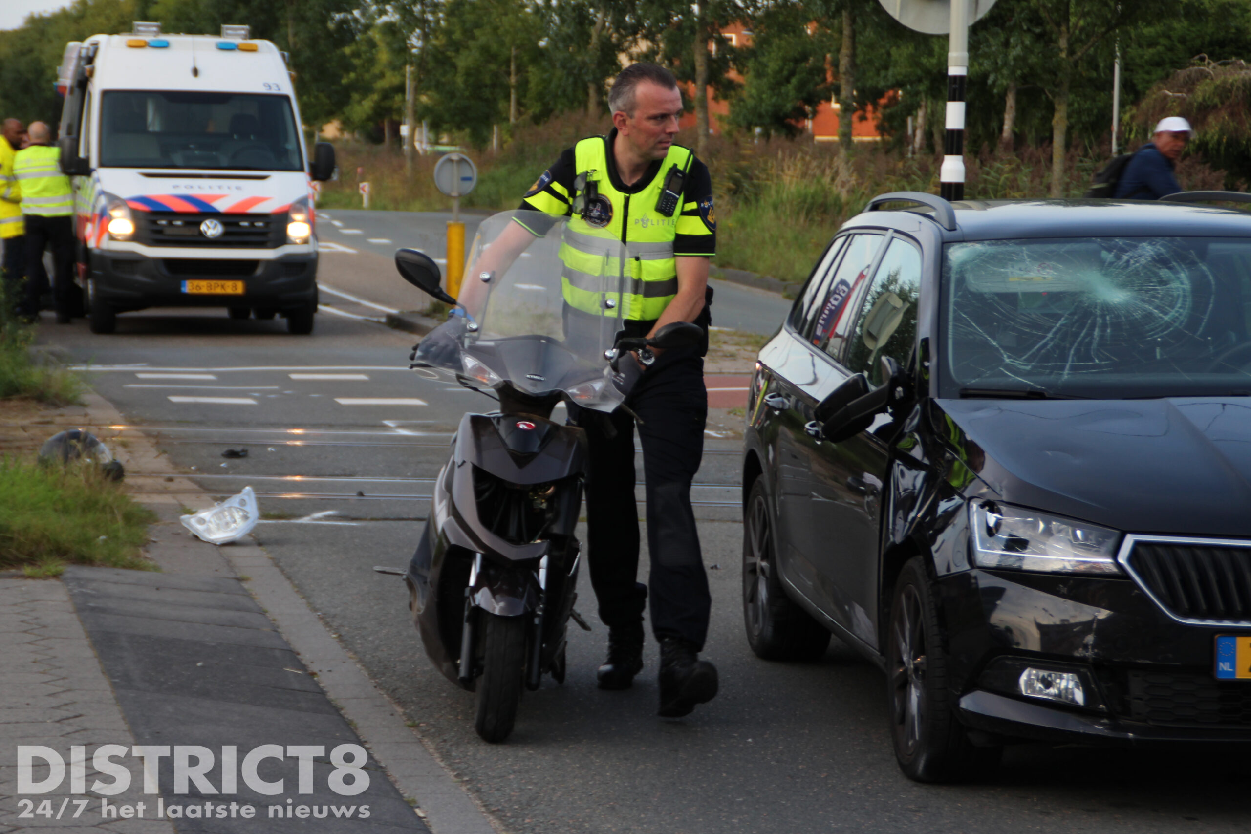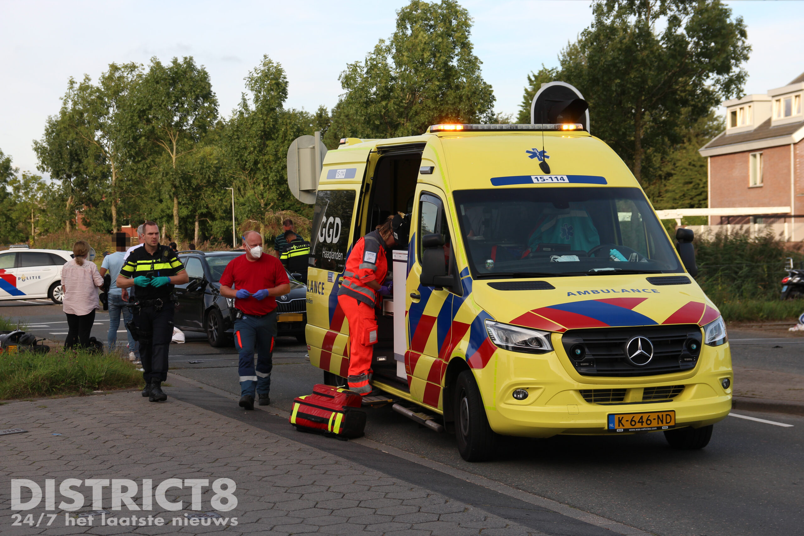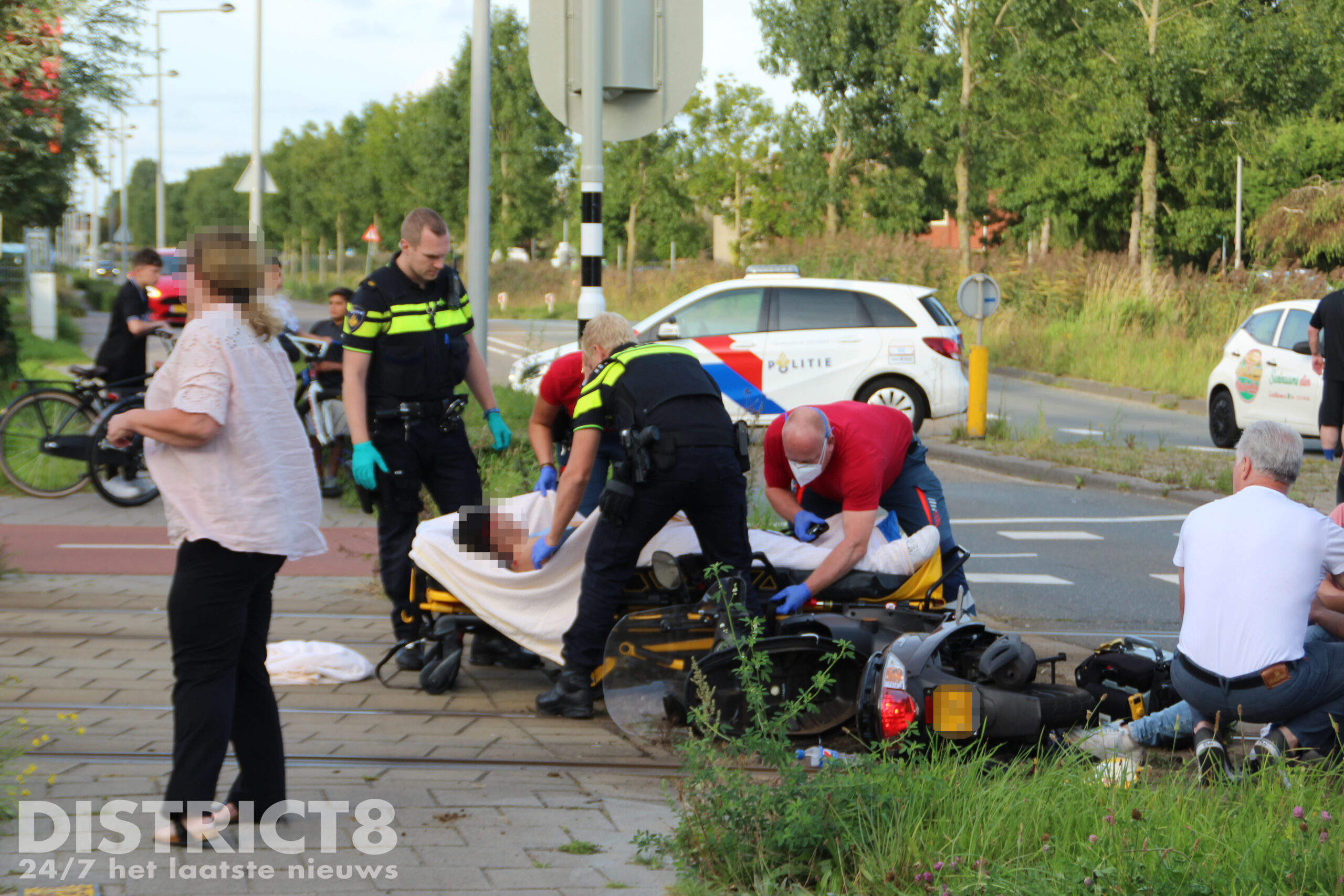Het ambulancepersoneel en de arts van het MMT hebben de twee opzittenden van de scooter gecontroleerd op verwondingen, één persoon is uiteindelijk met A1 (spoed) vervoerd naar het ziekenhuis.