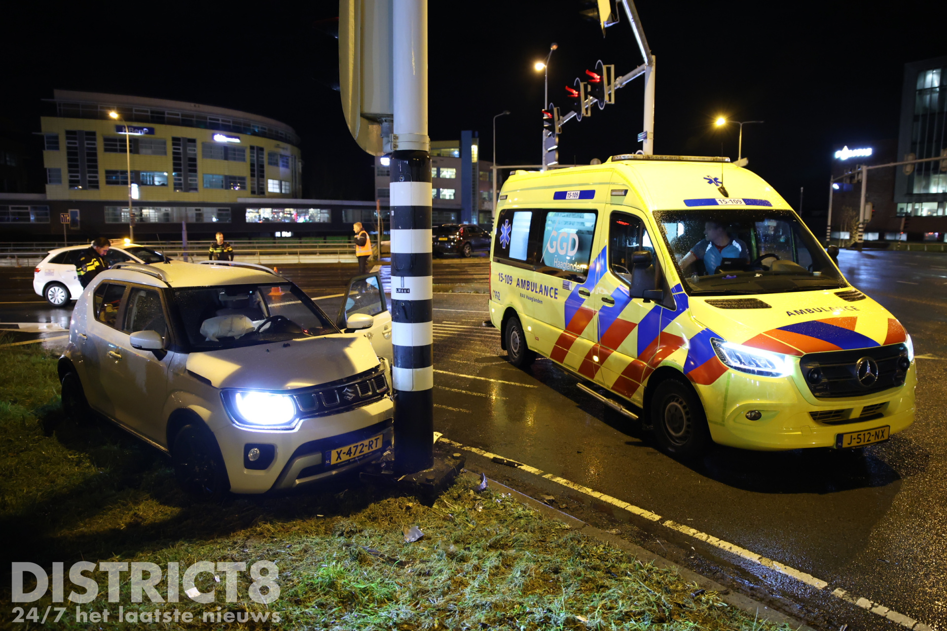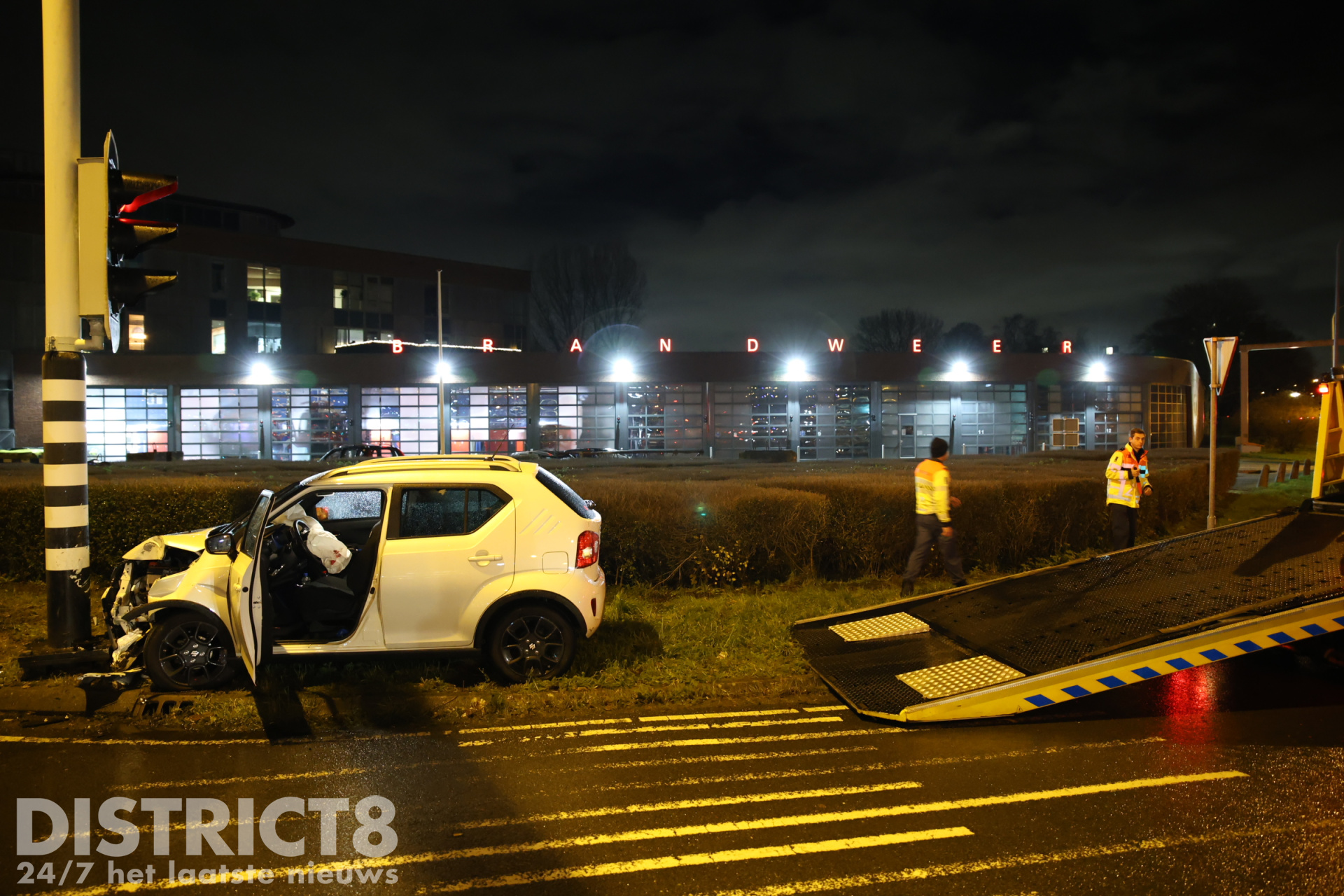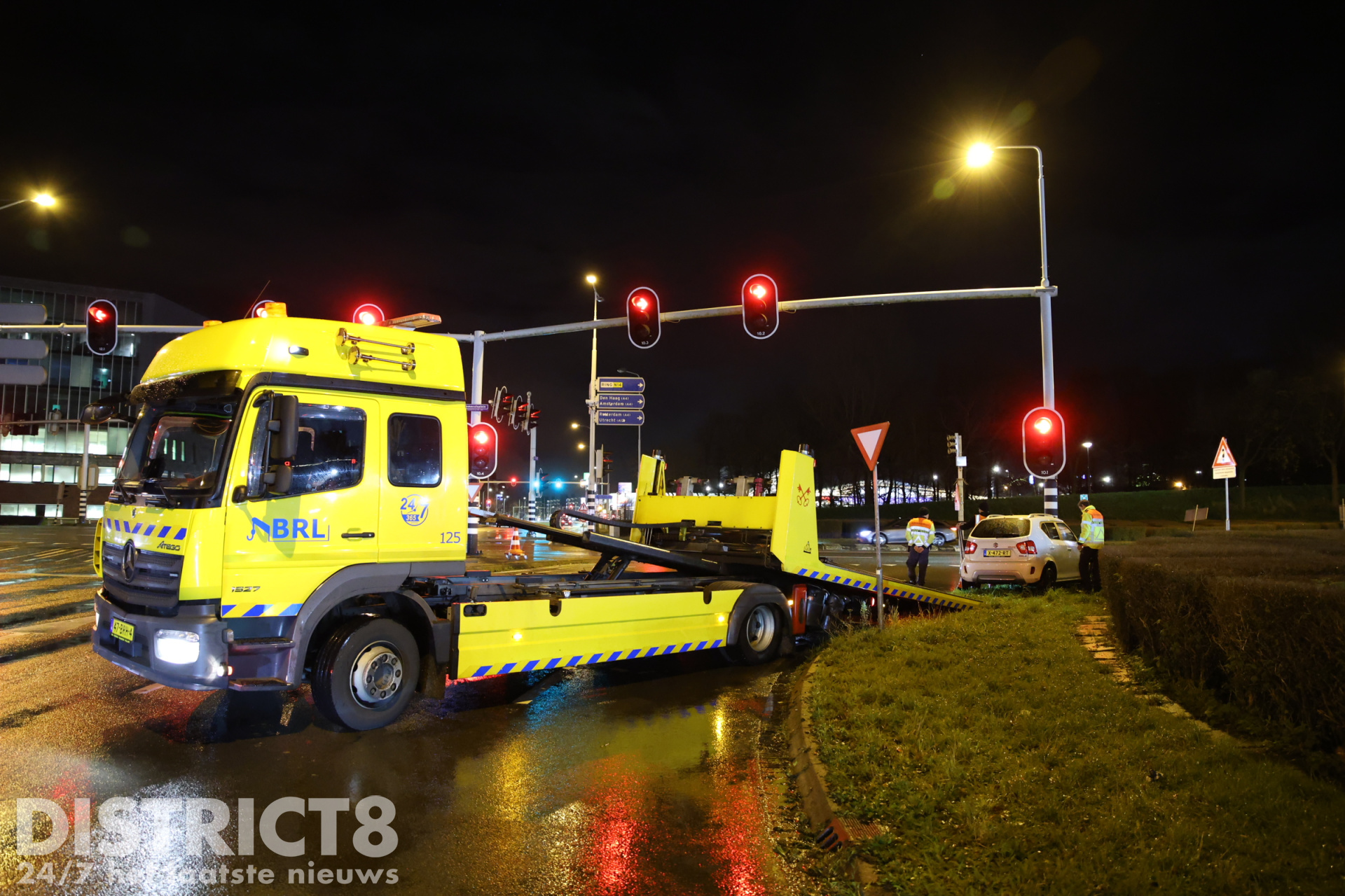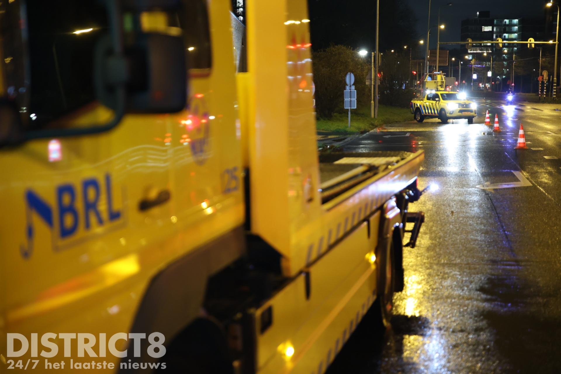 Voorburg – Op de kruising van de N14 met de Monseigneur van Steelaan in Voorburg is maandagavond 2 december een automobiliste tegen een verkeerslicht geklapt.