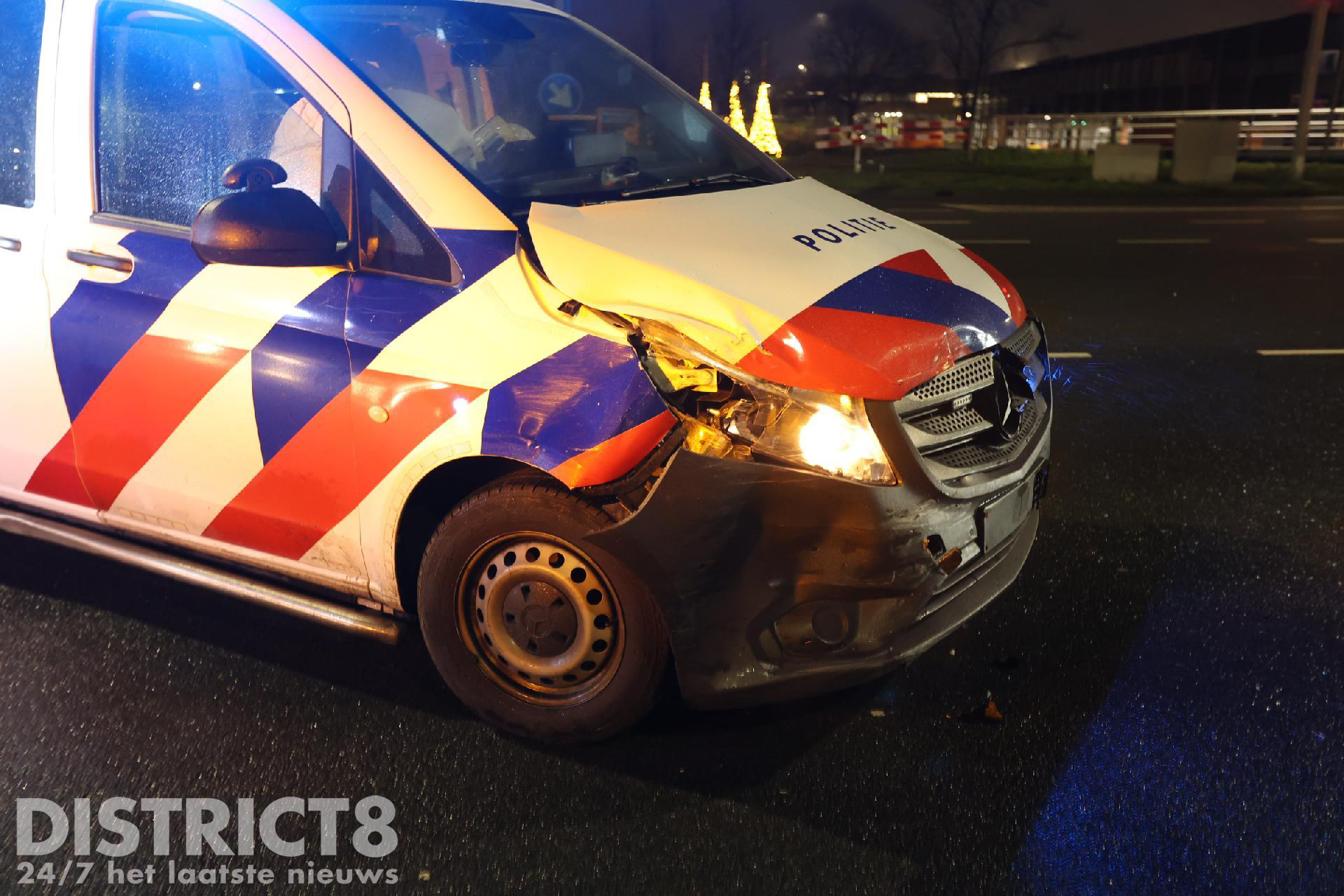 Het is niet bekend of het politievoertuig met zwaailichten en sirenes onderweg was naar een melding.