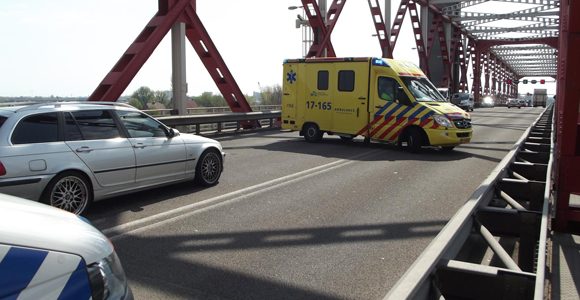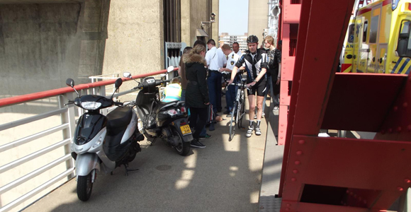Spijkenisse – De politie en 2 ambulance’s werden woensdagmiddag 1 mei met spoed gealarmeerd voor een ongeval op de Spijkenissebrug. Ter plaatse was vanuit de richting Hoogvliet een scooterrijder tegen een fietser aangereden en was de scooterrijder hier bij met zijn hoofd op de reling van de brug terecht gekomen.