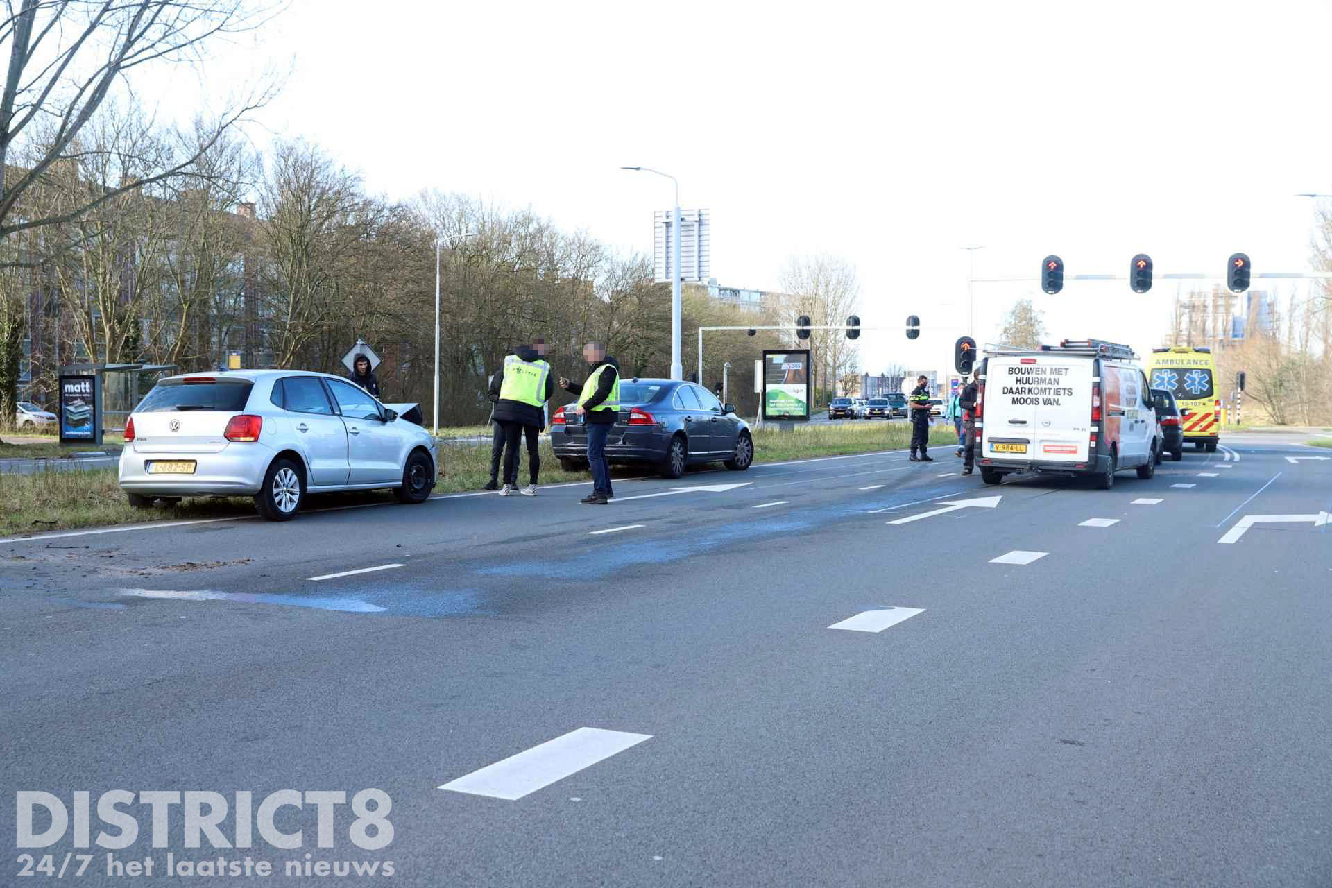 Twee bestuurders van de tweede aanrijding zijn door de ambulance nagekeken en vervoerd naar het ziekenhuis. Berger Vreugdenhil heeft enkele auto’s geborgen.
