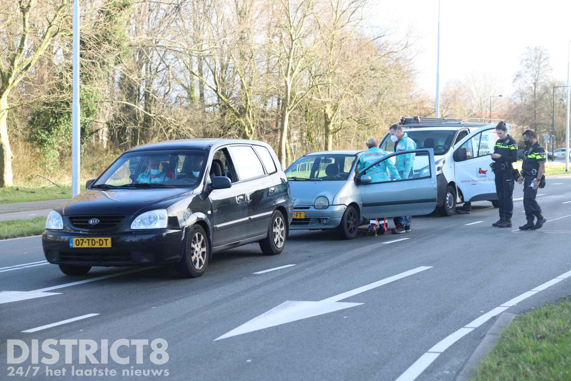 Rond tien voor drie kwamen twee voertuigen met elkaar in botsing. Hier raakte beide auto’s flink beschadigd, maar raakte niemand gewond. Niet veel later kwamen drie andere voertuigen op dezelfde plek met elkaar in botsing.