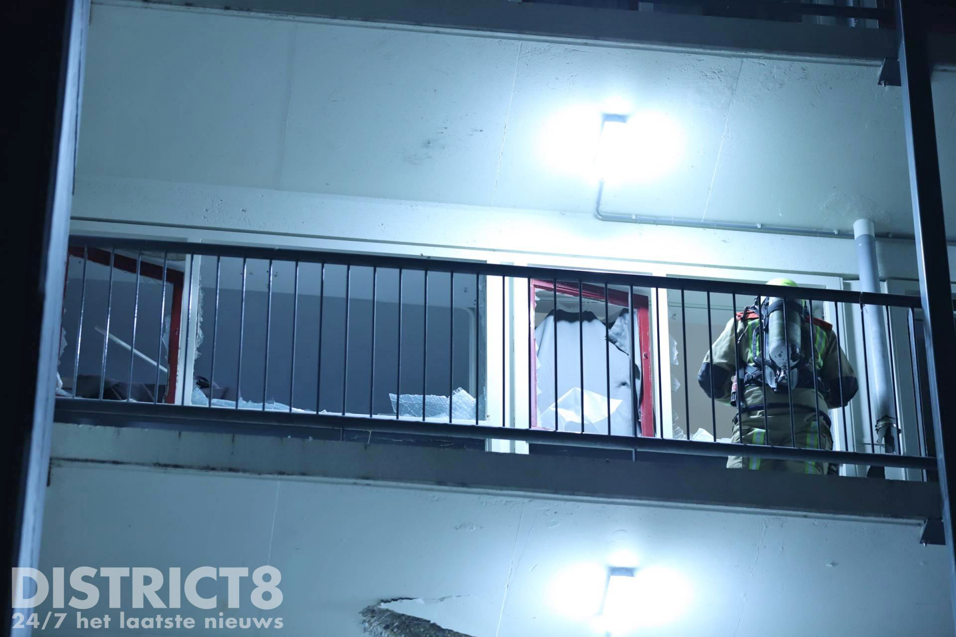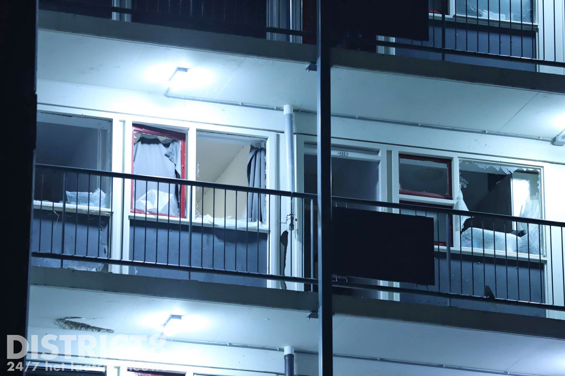 Ter plaatse bleek er op de 4e etage van een flat een explosie te hebben plaatsgevonden. Door de explosie werden de ramen uit de pui van de woning geblazen en raakte de galerij zwaar beschadigd. Ter plekke bleek geen sprake meer van brand. De hulpdiensten hebben direct enkele woningen op de 4e en de boven- en onderliggende verdiepingen ontruimd. Ook waren deuren van de galerijen en ramen zwaar beschadigd geraakt.
