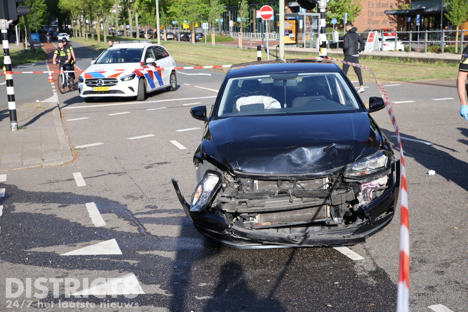 Volgens getuigen reed de zwarte auto met hoge snelheid richting de Buitenhofdreef toen deze op de kruising een overstekende auto raakte. Door de klap kwam de andere auto tot stilstand tegen een verkeerspaaltje.